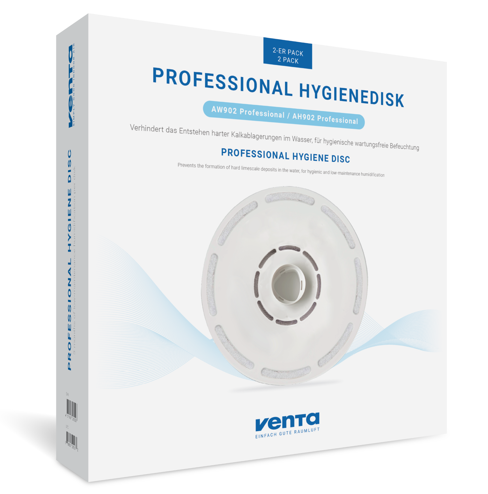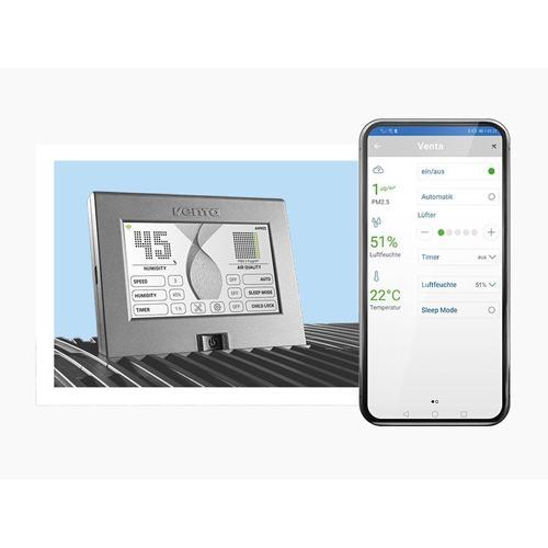 Modèle hybride pour purifier et humidifier l’air intérieur Le Venta Professional AH902 humidificateur/purificateur d’air est un modèle hybride doté d’une technologie WiFi intégrée, conçu pour purifier et humidifier efficacement l’air intérieur. Grâce à la technologie VentWave™ 3D et au disque hygiénique breveté Hygienedisk, l’appareil est particulièrement facile à entretenir. La lampe UV-C intégrée empêche la formation et la prolifération des virus et bactéries, avec une efficacité allant jusqu’à 99,9 %. L’appareil peut être commandé soit via l’écran tactile interactif, soit à l’aide de l’application Smart Life (smartphone ou tablette), grâce à la fonction WiFi intégrée de série. L’écran clair affiche en temps réel les valeurs actuelles de la pièce. Cinq niveaux de réglage manuel sont disponibles, ainsi qu’un mode automatique et un mode nuit. Grâce à des capteurs professionnels de poussières, d’odeurs/gaz et d’humidité, le laveur d’air Venta régule automatiquement la purification et l’humidification de l’air dans des pièces jusqu’à 70 m². La purification de l’air est assurée par un filtre combiné avec filtre HEPA H14 (conforme à la norme DIN EN 1822, avec technologie brevetée Nelior). L’évaporation à froid est la méthode la plus hygiénique pour humidifier l’air, sans utiliser de tapis d’humidification. La technologie VentWave™ 3D repose sur de nombreuses micro-ouvertures permettant un taux d’évaporation nettement supérieur à celui d’une surface plane. L’activation plasma garantit une performance d’évaporation plus efficace avec une consommation de matériau réduite. Le système VentWave™ innovant peut être facilement démonté pour le nettoyage. Le disque hygiénique breveté Venta Hygienedisk réduit considérablement l’entretien, car il détartrе l’eau du robinet, garantit une humidification hygiénique et rend les additifs chimiques inutiles. La formation et la prolifération de virus, bactéries et spores de moisissures dans l’eau sont également empêchées par la lampe UV-C intégrée, avec une efficacité jusqu’à 99,9 %. Ce modèle fonctionne de manière extrêmement silencieuse et dispose d’un réservoir d’eau de 12 litres, facilement remplissable avec de l’eau du robinet. La combinaison d’une humidification brevetée par lavage de l’air avec traitement UV-C et d’une filtration multi-étages de qualité salle blanche fait du AH902 un appareil de référence dans sa catégorie. Caractéristiques Convient aux pièces jusqu’à 70 m² Humidification puissante par évaporation à froid et purification de l’air Commande via écran tactile interactif Fonction WiFi intégrée de série. Application Smart Life pour smartphone ou tablette Capteurs intelligents et haut de gamme pour l’affichage en temps réel de la qualité de l’air, de la température et de l’humidité Technologie de filtration Nelior certifiée avec filtre HEPA H14 pour salle blanche, conforme DIN EN 1822 Préfiltre pour particules grossières jusqu’à 10 μm, prolonge la durée de vie du filtre HEPA H14 Jusqu’à 99,9 % de désinfection grâce à la technologie UV-C Disques VentWave™ pour une évaporation à froid naturelle et hygiénique. Aucun remplacement de tapis ou filtres d’humidification nécessaire 5 niveaux de puissance, mode automatique et mode nuit Élégant anneau lumineux LED Faible consommation énergétique. 7 / 8 / 14 / 20 / 42 W Fonctionnement très silencieux. 17 / 26 / 37 / 43 / 47 dB(A) Réservoir d’eau de 12 litres. Fonctionne avec de l’eau du robinet Avertissement et arrêt automatique en cas de manque d’eau Fonctions intelligentes. Alertes de maintenance et de nettoyage intensif. Unité d’évaporation lavable au lave-vaisselle Remplacement facile du filtre En option. Filtre à charbon actif Hygienedisk inclus gratuitement