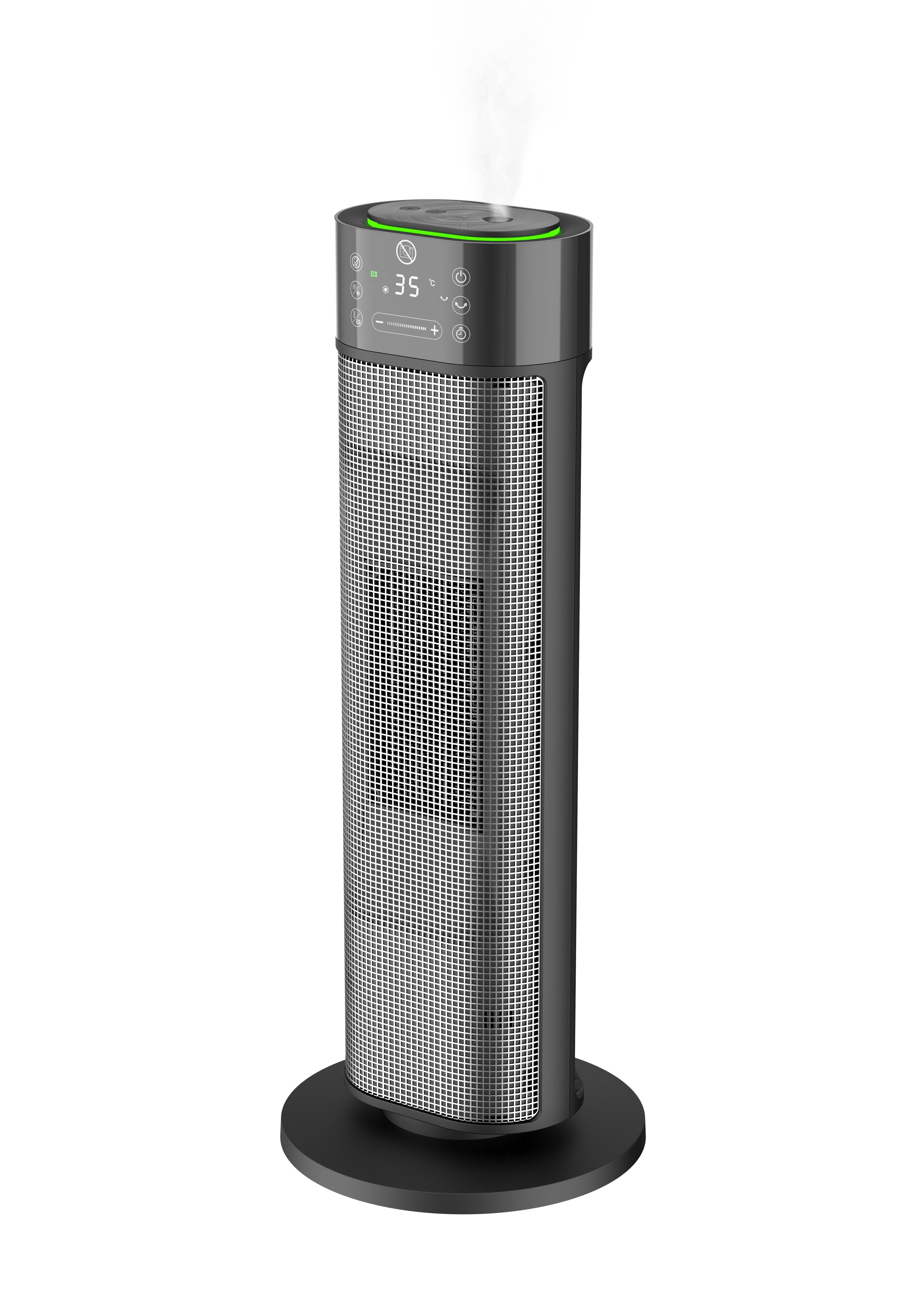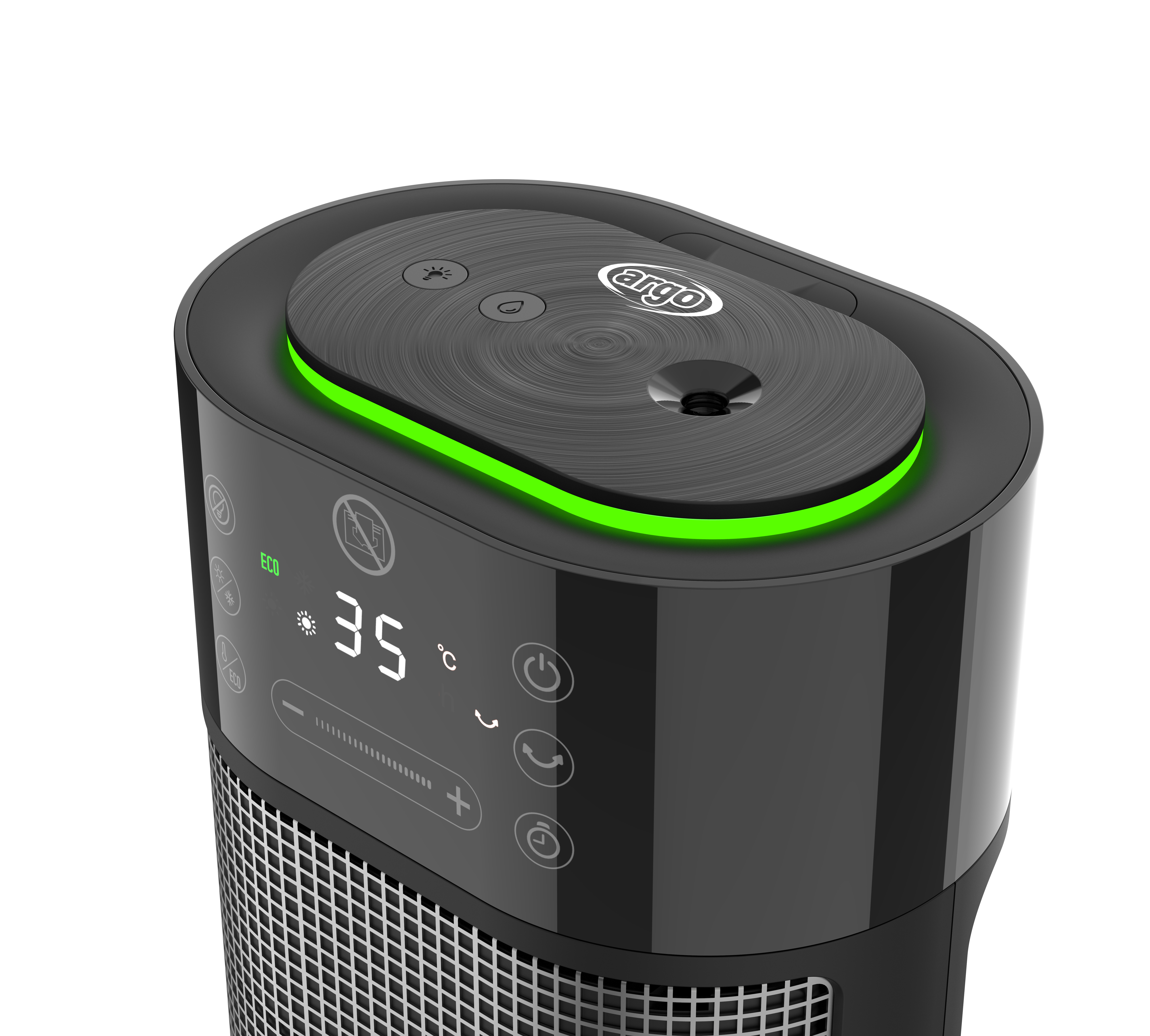 Élégant, avec une apparence technologique, en noir intégral, l’ARGO TECH TOWER HUMY est bien plus qu’un chauffage tour PTC: en plus de chauffer efficacement, il contribue à assurer un confort optimal grâce à la fonction d’humidification ultrasonique. La fonction ECO SMART, qui décide de manière autonome quel mode activer en fonction de la température ambiante, optimise la consommation. La LED colorée sur le bord supérieur peut être activée indépendamment et sert de lumière d’ambiance.