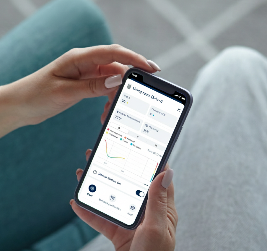 • Fonctionnalité 3-en-1 : Combine chauffage, refroidissement et purification HEPASilent dans un seul appareil. Propulsé par la technologie brevetée TripleFlow Hot & Cool de Blueair, pour un confort inégalé en toutes saisons. • Purification de l’air rapide et efficace : De l’air pur en quelques minutes – avec un CADR (Clean Air Delivery Rate) de 192 m³/h, il purifie une pièce de 39 m² en seulement 30 minutes. • Silencieux & mode nuit : Fonctionne à des niveaux sonores ultra discrets (minimum ~24 dB, jusqu’à ~52 dB en mode boost), avec un mode nuit spécial à faible luminosité et bruit minimal – idéal pour les chambres ou les bureaux. • Commande intelligente et intuitive : Gérez les réglages via écran tactile, télécommande, application ou commande vocale (Alexa / Google Home). Les fonctions incluent la programmation, le mode éco, l’ajustement de la luminosité, etc., via l’application Blueair. LE PLUS PUISSANT: Avec une diffusion d’air pur inégalée, le Blueair ComfortPure™ 3-en-1 est le purificateur d’air multifonction le plus puissant du marché. Il surpasse la concurrence avec jusqu’à 44 % d’air pur en plus. CONFORT TOUTE L’ANNÉE: Profitez d’un air pur à la température de votre choix, en toute saison. La technologie TripleFlow Hot & Cool avec trois sorties d’air distinctes optimise les modes de refroidissement, de chauffage et de purification. Quel que soit le mode sélectionné, l’air passe toujours par notre technologie de filtration. CHALEUR PARFAITE: Chauffez rapidement la pièce jusqu’à 38 °C pour un confort idéal. Grâce à la technologie de chauffage PTC, l’appareil atteint une température stable en seulement 60 secondes pour éliminer les zones froides de votre maison. Réglez le flux constant d’air chaud purifié ou choisissez l’angle idéal avec une oscillation jusqu’à 350 degrés. FRAÎCHEUR AGRÉABLE: Le mode de refroidissement utilise une ventilation puissante avec un double flux d’air, créant une grande portée de diffusion d’air purifié. DESIGN ÉLÉGANT: Conçu pour s’intégrer harmonieusement dans tous les intérieurs. La silhouette fine et la couleur lin douce s’accordent avec tout type de décoration. FILTRATION DE QUALITÉ: Notre technologie de double filtration HEPASilent™ combine filtration mécanique et charge électrostatique pour éliminer 99,97 % des particules jusqu’à 0,1 micron. La fumée, la poussière, les allergènes et même les particules microscopiques telles que les virus et bactéries sont capturés, avec un niveau sonore minimal. MOINS D’ENCOMBREMENT: Grâce à ses trois fonctions en un seul appareil, le ComfortPure™ 3-en-1 réduit le besoin d’équipements séparés à la maison. Vous gagnez ainsi de la place et évitez les contraintes de stockage saisonnier. TROIS MODES DE CONTRÔLE: Réglez facilement vos préférences via l’interface de l’appareil, la télécommande ou l’application Blueair. L’app vous donne accès à des fonctions avancées comme le contrôle vocal Alexa/Google Home, la programmation, l’ajustement de la luminosité ou le mode ECO. SOMMEIL APAISANT: Créez l’environnement idéal pour vos nuits en sélectionnant le mode Refroidissement ou Purification renforcée, et activez le mode Sommeil pour une faible luminosité et un niveau sonore très discret. FILTRE INCLUS: Le ComfortPure™ 3-en-1 est livré avec un filtre préinstallé d’une durée de vie allant jusqu’à 9 mois. Grâce au voyant LED ou à l’application Blueair, vous recevez un rappel simple lorsqu’il est temps de le remplacer.