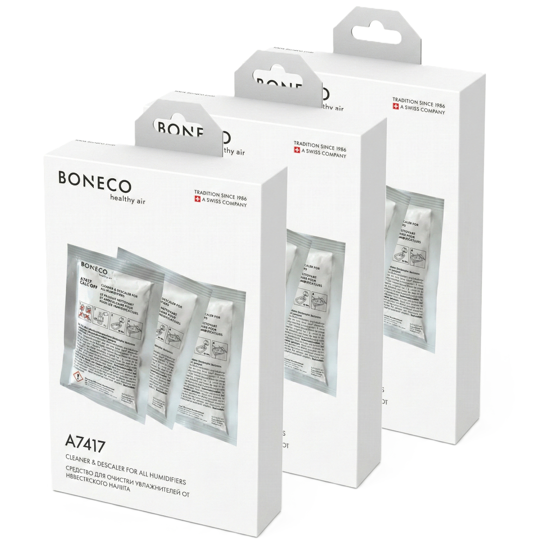 Humidificateur BONECO E200 - Lauréat du Red Dot Design Award L’humidificateur BONECO E200 a été récompensé par le prestigieux Red Dot Design Award. Cet humidificateur à évaporation à froid séduit par son design sobre et rafraîchissant, tout en offrant une utilisation simple et intuitive. Le BONECO E200 dispose de 3 niveaux de puissance et d’un éclairage LED, facilement contrôlables via un panneau de commande intuitif. Avec une capacité d’humidification de 4,8 litres par jour, il humidifie silencieusement des pièces jusqu’à 30 m². Le compartiment d’aromathérapie intégré permet l’utilisation d’huiles essentielles. Lorsque le réservoir d’eau est vide, l’appareil s’éteint automatiquement. Le réservoir (3,8 litres) se remplit facilement par le haut. Le Ionic Silver Stick (ISS) maintient l’eau du réservoir exempte de bactéries. Le Boneco E200 fonctionne selon le principe de l’évaporation à froid, ce qui permet une utilisation tout au long de l’année. Ce procédé autorégulateur assure automatiquement un taux d’humidité optimal, en diffusant uniquement la quantité d’humidité nécessaire dans l’air ambiant. Un ventilateur aspire l’air sec à travers le filtre d’évaporation humide et le restitue parfaitement humidifié. L’eau s’évapore naturellement jusqu’à l’obtention du niveau d’humidité idéal. Un taux d’humidité correct est essentiel pour un environnement de vie et de travail sain. Un air trop sec peut provoquer une peau sèche et irritée, des yeux secs et augmenter la sensibilité aux rhumes et autres infections. Cet humidificateur à eau froide écoénergétique garantit un climat intérieur sain dans les salons, chambres, chambres d’enfants ainsi que dans les bureaux. Caractéristiques Pour pièces jusqu’à 30 m² (75 m³) Humidificateur à évaporation à froid Capacité d’humidification : 4,8 litres par jour 3 niveaux de puissance Commande simple et intuitive Consommation électrique : 2,2 – 5,7 watts Niveau sonore : 25 – 44 dBA Arrêt automatique lorsque le réservoir est vide Remplissage facile du réservoir par le haut Compartiment d’aromathérapie intégré (huiles essentielles) Fonctionnement silencieux et économe grâce au moteur DC Éclairage LED multicolore, désactivable Fonctionnement écoénergétique Ionic Silver Stick® limite la croissance des micro-organismes Livré avec Ionic Silver Stick (ISS) Composants de haute qualité et longue durée de vie Lauréat du Red Dot Design Award