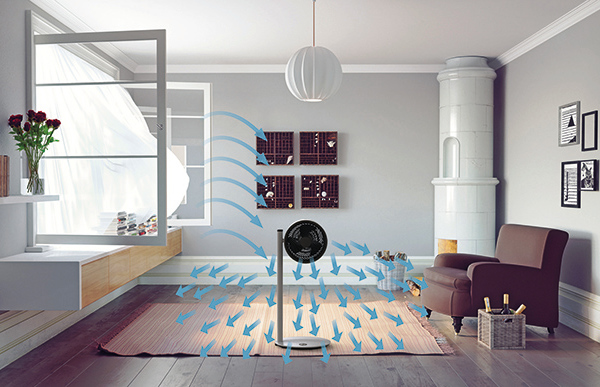 Le ventilateur BONECO F235 associe technologie et design Le Boneco F235 est un ventilateur polyvalent réglable en hauteur. Grâce à la structure de connexion spéciale de la base, la hauteur du ventilateur peut être réglée individuellement sur 49, 85 ou 121 cm (utilisation maximale de deux éléments de connexion simultanément). Le ventilateur est équipé d’une tête orientable avec un angle d’inclinaison jusqu’à 270 degrés, permettant de diriger le flux d’air librement. Son excellente circulation de l’air repose sur trois éléments principaux: Le design à bras unique assure une aspiration maximale de l’air Les pales profondes déplacent de grands volumes d’air La forme arquée spécifique de la grille frontale augmente la vitesse de l’air En orientant le flux d’air vers le plafond, il est possible de créer l’effet typique Air Shower, tout en réduisant les zones chaudes et froides. Le ventilateur peut également répartir l’air entre plusieurs étages, extraire l’air vers l’extérieur ou, en combinaison avec un climatiseur ou un système de chauffage, assurer une température homogène. La partie supérieure du F235 DC intègre le régulateur de puissance avec 32 niveaux de vitesse. Les niveaux 1 à 16 sont destinés au rafraîchissement direct et les niveaux 17 à 32 au rafraîchissement indirect. Un écran numérique situé dans la base affiche la vitesse actuelle du ventilateur. Via l’application BONECO, les fonctions de minuterie et les niveaux de luminosité de l’écran peuvent être personnalisés. Caractéristiques Ventilateur sur pied Circulation d’air: 1.439 m³/h Tête inclinable: flux d’air réglable manuellement jusqu’à 270° 32 vitesses de ventilation. 16 directes et 16 indirectes Écran numérique intégré à la base Hauteur réglable: 49, 85 ou 121 cm Commande via Bluetooth avec l’application BONECO Niveau sonore: 34 – 64 dB(A) Lauréat du Red Dot Design Award