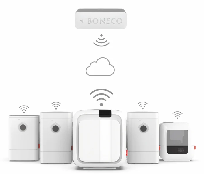 Le Boneco X50 SMART est un capteur intelligent et compact de température et d’humidité qui vous permet de surveiller facilement le climat intérieur. Via l’application Boneco Smart, vous suivez la température et l’humidité en temps réel, où que vous soyez. Grâce à la connexion Wi-Fi 2,4 GHz et à la compatibilité avec les assistants intelligents, le X50 SMART s’intègre parfaitement dans une maison connectée moderne et dans l’écosystème Boneco Smart.