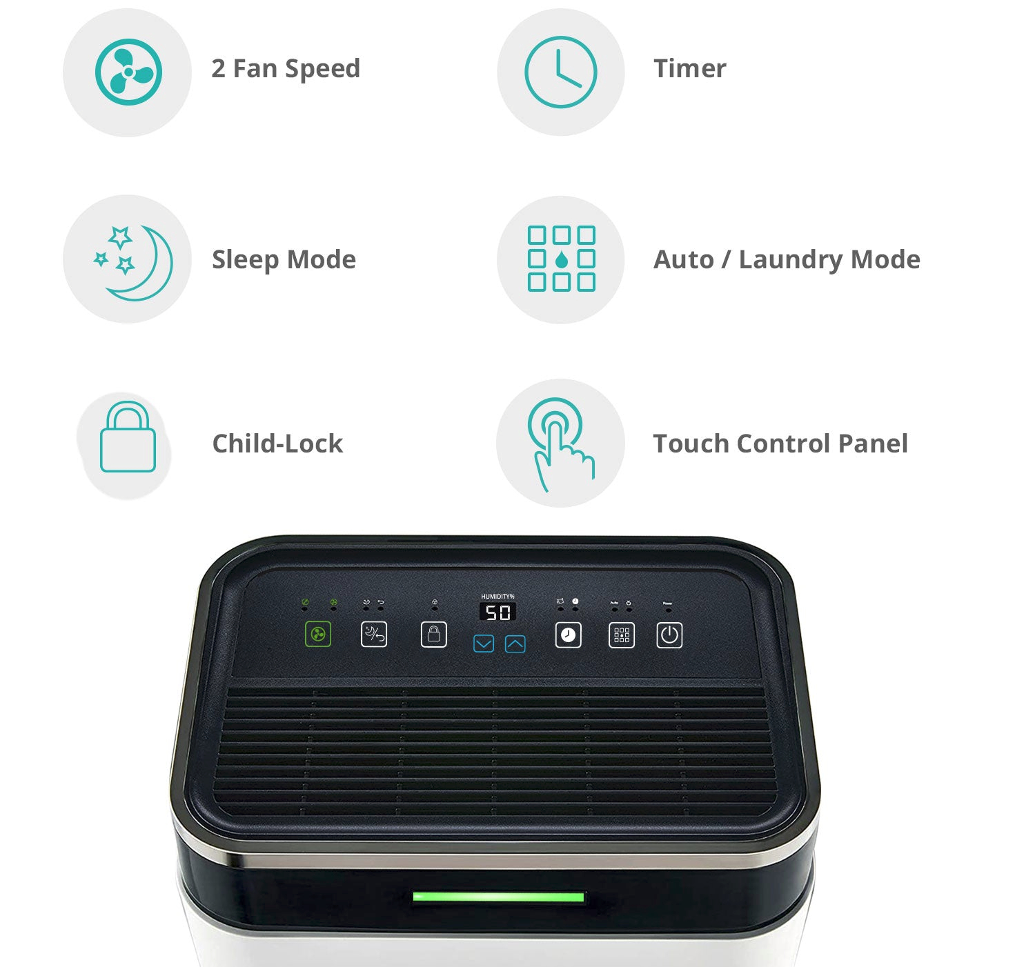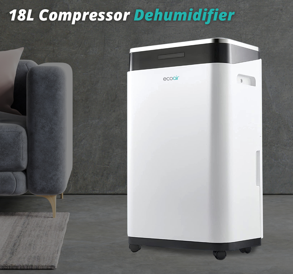 Le déshumidificateur EcoAir DC18 MK2, avec une capacité de déshumidification allant jusqu’à 18 litres d’eau par jour, est une référence en matière de performance, de réglages et de facilité d’utilisation. Son élégant indicateur d’humidité change de couleur : bleu pour une faible humidité (< 45 % HR), vert pour un taux d’humidité optimal (45 - 65 % HR), et rouge pour une humidité élevée (> 65 % HR). L’EcoAir DC18 MK2 est équipé d’un affichage numérique de l’hygromètre, d’un filtre à charbon actif pour éliminer les mauvaises odeurs, ainsi que d’un grand réservoir d’eau de 6,5 litres. Il est également possible d’évacuer l’eau directement à l’aide d’un tuyau de drainage : il suffit de raccorder le tuyau fourni.