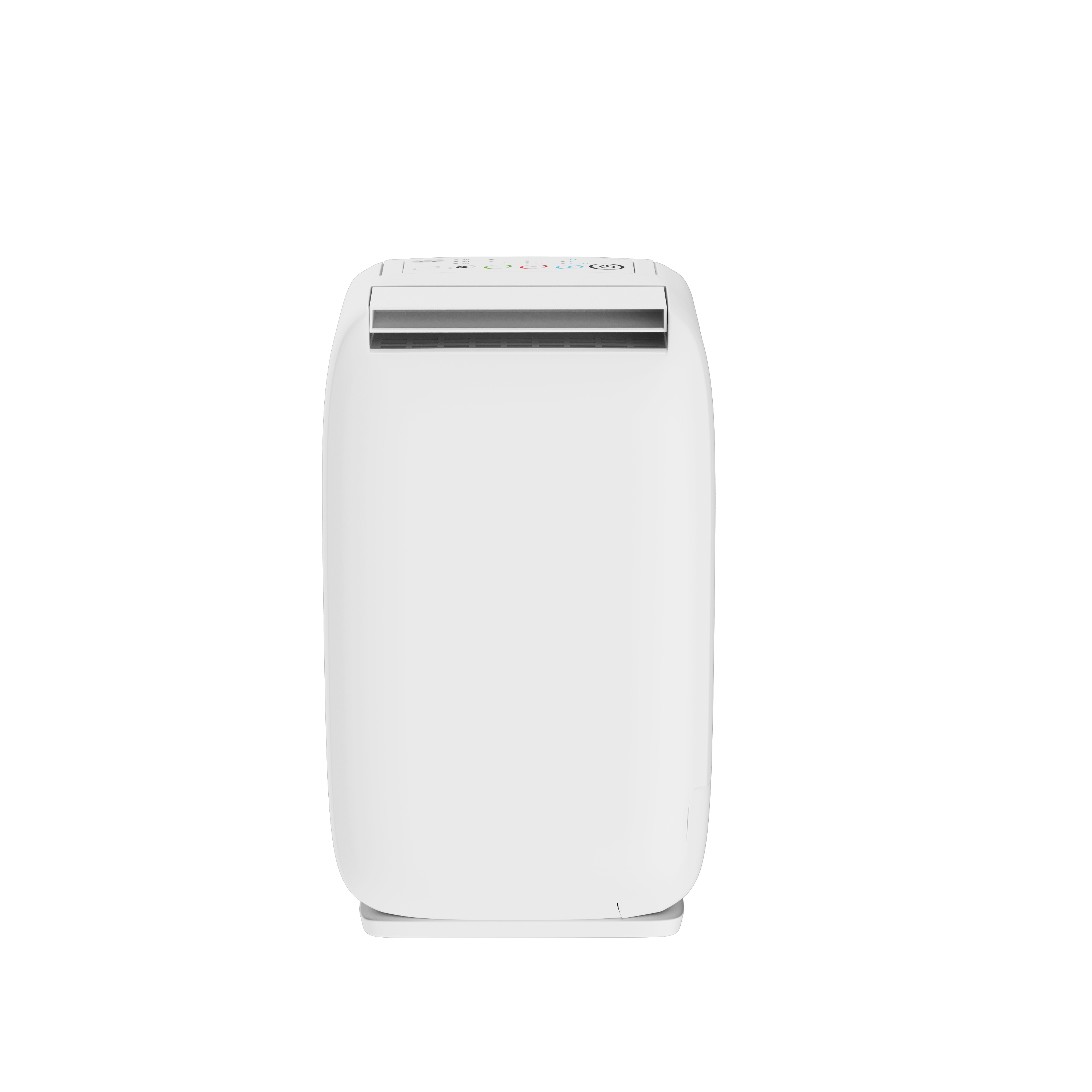 EcoAir DD1 Mini : petit mais puissant Le DD1 Mini est un déshumidificateur à adsorption puissant avec une vitesse d'extraction maximale de 6 litres/jour. Il est parfait pour sécher des pièces jusqu'à 50 m². Avec un poids de seulement 5,1 kg et une largeur de 27 cm, cet appareil est étonnamment efficace pour sa taille. Sa fonction de déshumidification automatique active automatiquement le mode ventilation. Dans cette position, il fait circuler l'air ambiant et collecte des données sur l'humidité de l'air. L'air est trop humide ? Le DD1 Mini commence immédiatement à sécher. Réguler l'humidité de l'air grâce à différents modes EcoAir DD1 Mini réduit l'humidité de l'air grâce à plusieurs modes fixes. Choisissez le mode élevé pour une déshumidification puissante. En mode ECO, il limite sa consommation d'énergie et son niveau sonore. Le mode automatique avec technologie E7 bascule automatiquement entre ces deux modes afin de contrôler avec précision le taux d'humidité réglé. Vous souhaitez sécher du linge humide ? Optez pour les deux modes continus pour un séchage ultra rapide des vêtements mouillés. En mode turbo, l'appareil utilise toute sa puissance pour réduire le taux d'humidité le plus rapidement possible. Répartissez le flux d'air de manière optimale grâce à la grille Louvre La grille de ventilation est réglable manuellement. Réglez le mode souhaité et le déshumidificateur répartit l'air conditionné de manière ciblée dans la pièce. Utilisez cette fonction pour optimiser la répartition uniforme de l'air séché ou réglez le flux d'air de manière ciblée, par exemple pour sécher les taches d'humidité sur un mur ou pour sécher de manière ciblée des vêtements humides sur un étendoir. Caractéristiques du déshumidificateur EcoAir DD1 Mini Léger avec seulement 5,1 kg Silencieux avec seulement 32 dBA en mode faible Format compact Livré avec un filtre 4 en 1 : anti-allergène, désodorisant, antibactérien et filtration des poussières Réservoir de 1,8 litre Lamelles de canalisation d'air à 3 positions Mode silencieux et mode lavage Fonction de redémarrage automatique Sécurité anti-basculement Minuterie : 2 h / 4 h / 8 h Pas d'option d'évacuation continue Garantie 3 ans