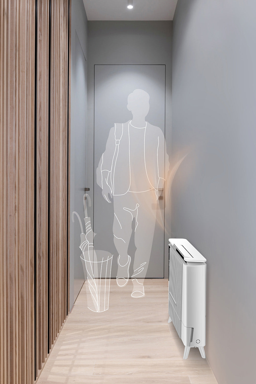 Déshumidificateur à adsorption et chauffage mural ou sur pied Le EcoAir DDWH10 est un déshumidificateur à adsorption et chauffage qui peut fonctionner uniquement en mode déshumidification ou en mode chauffage, mais pas simultanément. Il peut être installé au sol ou fixé au mur. Le DDWH10 extrait jusqu’à 6 litres d’humidité par jour à des températures comprises entre 1 °C et 40 °C, idéal pour une utilisation tout au long de l’année. Il est équipé d’une poignée intégrée pour un transport facile. Technologie E7s améliorée - Économie d’énergie Arrêt automatique lorsque le taux d’humidité programmé est atteint. Redémarrage automatique lorsque l’humidité dépasse le seuil défini. Échantillonnage intelligent de l’air Le DDWH10 s’allume automatiquement toutes les 30 minutes pour évaluer la qualité de l’air. Résistant à l’eau : Certification IP24 Convient pour une installation murale dans les salles de bain. Fonctions de sécurité Arrêt automatique lorsque le réservoir d’eau est plein. Détection de surchauffe : régulation automatique de la puissance ou activation du témoin lumineux. Préfiltre et filtre à charbon actif Préfiltre à nettoyer toutes les deux semaines et à remplacer une fois par an. Nettoyage simple avec une brosse douce ou un aspirateur. Filtre à charbon actif optionnel (vendu séparément), recommandé à changer tous les 6 mois selon l’utilisation et l’environnement. Mode séchage du linge Fonction puissante qui permet au DDWH10 de fonctionner en continu à pleine puissance jusqu’à modification des réglages. Réservoir antibactérien avec tuyau de vidange continu Réservoir de 2,2 litres avec couvercle anti-débordement. Tuyau de vidange continu pouvant être raccordé des deux côtés de l’appareil (tuyau en silicone de 1,5 m inclus). Réservoir antibactérien empêchant la formation de moisissures. Caractéristiques du produit Résistant à l’eau : IP24. Capacité de déshumidification (20 °C, HR 60 %) : 6 l/jour. Convient pour des pièces jusqu’à 50 m². Consommation électrique (déshumidification) : Bas 250 W / Haut 420 W. Consommation électrique (mode séchage du linge) : 1200 W. Consommation électrique (chauffage PTC) : Bas 630 W / Moyen 740 W / Haut 1500 W. Sécurité : arrêt automatique et capteur anti-basculement. Télécommande complète. Minuterie 1 à 7 heures. Niveau sonore : 37 / 53 dB(A). Débit d’air : 107,3 m³/h. Plage de fonctionnement : 1 ~ 40 ºC.