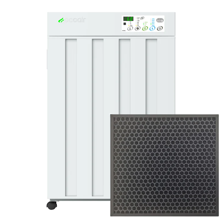 Le filtre à charbon actif EcoAir Droid est conçu pour éliminer les odeurs, les particules de poussière, le CO₂ et d’autres composés organiques volatils (COV) présents dans l’air. Nous recommandons de remplacer le filtre tous les 6 mois et de le nettoyer toutes les 2 semaines. Retirez l’excès de poussière à l’aide d’une brosse douce ou d’un aspirateur à faible puissance. Ne lavez pas et ne rincez pas le filtre, car cela pourrait réduire son efficacité.