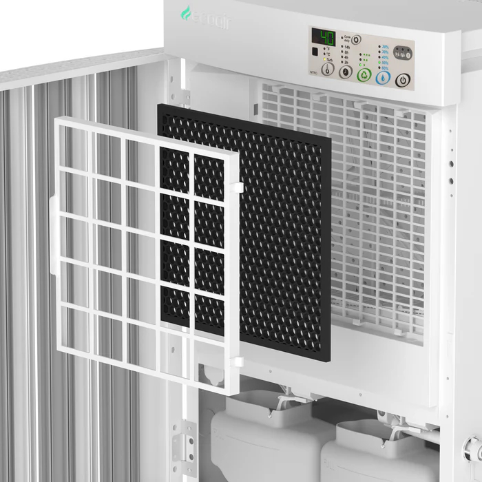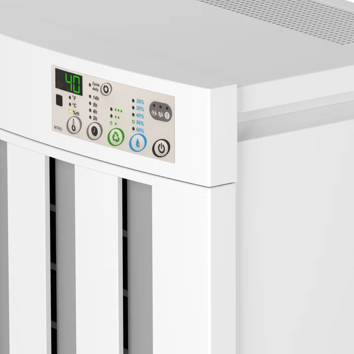 EcoAir Droid est un déshumidificateur professionnel à adsorption avec une capacité de déshumidification élevée pouvant atteindre 25 litres d'humidité par jour. Sa large plage de température le distingue des autres déshumidificateurs professionnels, il sèche efficacement à une température ambiante comprise entre -5 °C et 40 °C. Cette large plage de température le rend adapté à toutes les saisons et aux pièces non chauffées comme aux pièces chauffées. Droid est moins sensible aux températures ambiantes extrêmes qu'un déshumidificateur à condensation professionnel. Il est parfait pour une déshumidification puissante dans les musées, les galeries d'art, les garages, les bureaux, les caves, les spas, les piscines, les salles de sport, les hôtels, les vestiaires, les bibliothèques, les supermarchés, les librairies, les entrepôts et bien plus encore.