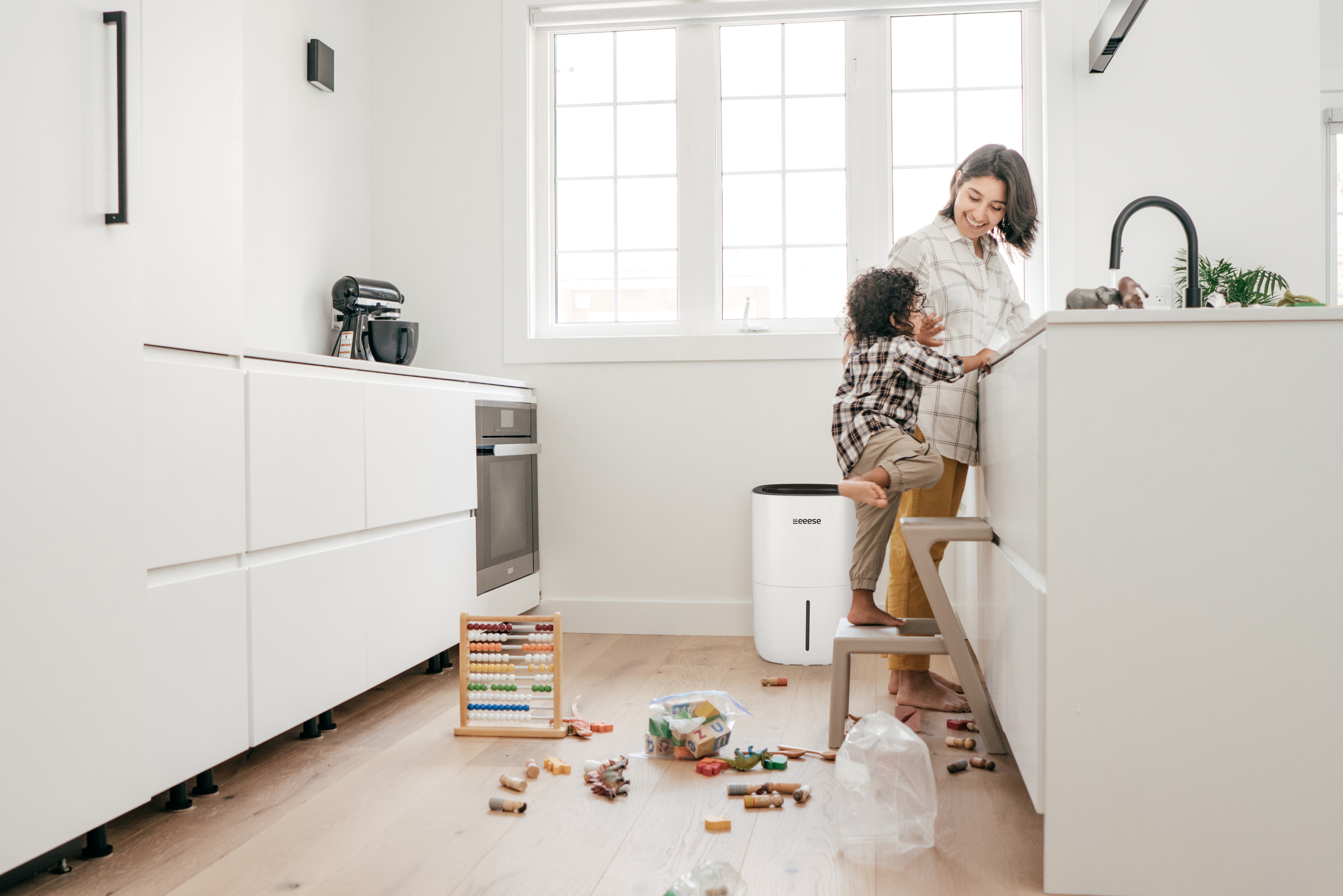 Le déshumidificateur Eeese Adam avec WiFi intégré est réputé pour être aussi silencieux qu'un réfrigérateur. Adam est élégamment conçu et parvient à maintenir des pièces jusqu'à 100 m² exemptes d'humidité excessive. Il s'intègre donc parfaitement dans les pièces à vivre et les caves. Le déshumidificateur Eeese Adam est équipé du WiFi et peut être commandé via Google Assistant.