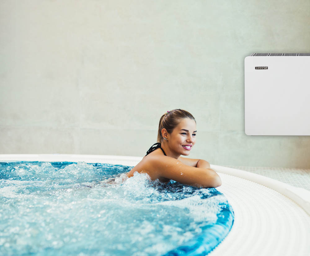 DÉSHUMIDIFICATEUR DE PISCINE FULL INVERTER Le tout premier déshumidificateur Full Inverter au monde pour piscines. Derrière le design élégant du déshumidificateur de piscine Eeese Axel Pool 96L se cache un appareil puissant, silencieux et économe en énergie. Le Eeese Axel Pool 96L peut également être utilisé dans des vestiaires, des centres de bien-être, des caves, ainsi que dans tout autre espace jusqu’à 200 m². En tant que premier déshumidificateur de piscine Full Inverter sur le marché, le Eeese Axel Pool 96L utilise la technologie Full Inverter. Le compresseur et le ventilateur sont régulés automatiquement à 100 % par fréquence, et l’appareil s’adapte de manière autonome à l’humidité relative de la pièce. Le Eeese Axel Pool 96L est parfaitement adapté aux espaces publics comme aux piscines d’intérieur.