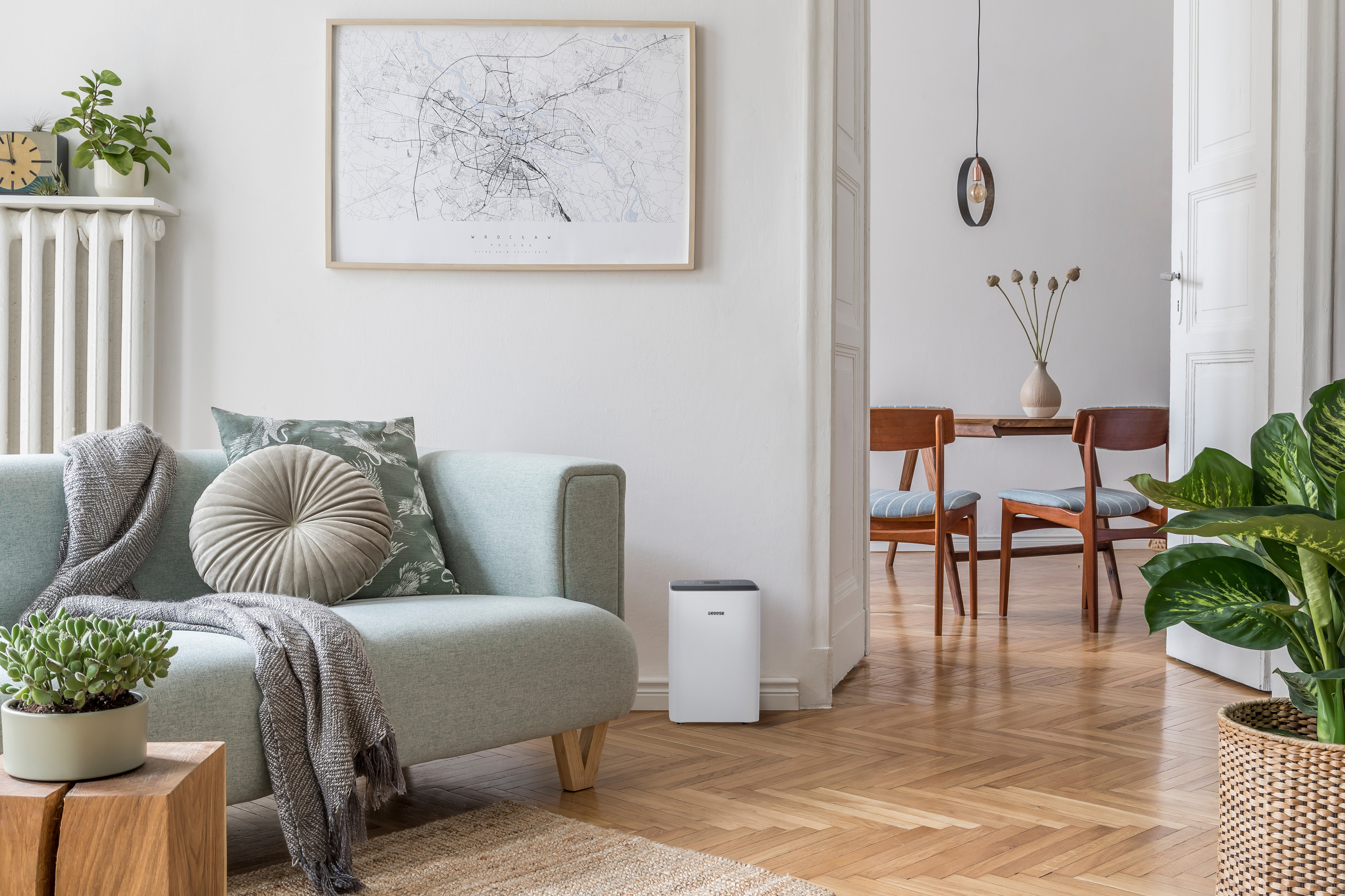 Les talents particuliers d'Emma Option pour un déshumidificateur et un purificateur d'air 2 en 1 Filtre HEPA en option Faible niveau sonore Faible consommation d'énergie Mode lavage - Efficace et meilleur pour l'environnement Arrêt automatique lorsque le réservoir d'eau est plein Minuterie 24 heures (arrêt) Fonction veille Option pour déshumidificateur et purificateur d'air 2 en 1 Tirez le meilleur parti de votre déshumidificateur grâce à la possibilité de combiner une déshumidification efficace avec une purification de l'air de qualité HEPA. Avec l'achat supplémentaire d'un filtre HEPA, Emma peut être transformé en un modèle hybride 2 en 1. Emma peut ainsi à la fois réduire l'humidité de l'air et purifier l'air des particules de poussière, du pollen et d'autres allergènes. Filtre HEPA Avec un filtre HEPA, vous ajoutez la possibilité d'améliorer la qualité de l'air dans la pièce. Un filtre HEPA aide à lutter contre l'accumulation de poussière, de pollen et d'autres allergènes et réduit les réactions allergiques. De plus, le filtre élimine les spores de moisissure, les bactéries et les virus présents dans l'air. Un niveau sonore et une consommation électrique très faibles Emma est un déshumidificateur très silencieux qui peut fonctionner à un niveau sonore de seulement 38 dB(A). Ce niveau est extrêmement faible pour un déshumidificateur, ce qui rend Emma parfaitement adapté aux petites pièces. De plus, Emma a une faible consommation électrique de seulement 175 W et sa fonction minuterie pratique vous permet de régler facilement l'heure à laquelle le déshumidificateur doit s'éteindre, ce qui vous permet d'économiser de l'électricité. Fonction de séchage du linge – efficace, plus respectueuse de l'environnement et moins coûteuse en électricité Dans de nombreux foyers, il peut être nécessaire d'utiliser un sèche-linge pour sécher rapidement le linge de la famille. Emma peut également accomplir cette tâche avec facilité. Le déshumidificateur est équipé d'une fonction de séchage des vêtements intégrée et intelligente, facile à utiliser via l'écran fonctionnel. D'un simple clic, la fonction très pratique de séchage des vêtements est activée, ce qui permet de sécher les vêtements très rapidement. Avec une consommation électrique de seulement 175 W, Emma est une alternative beaucoup moins coûteuse et plus efficace qu'un sèche-linge. Le déshumidificateur peut être utilisé pendant que vous dormez Emma assure également un climat intérieur agréable pendant que la famille dort. Si vous utilisez le déshumidificateur dans la chambre à coucher, vous pouvez le laisser fonctionner toute la nuit sans problème, car Emma est équipé d'une fonction veille intelligente qui s'active facilement et rapidement. Lorsque cette fonction est activée, le déshumidificateur fonctionne à faible vitesse et avec un niveau sonore de seulement 38 dB(A). Réglage simple de l'humidité Emma est équipée d'un écran LED intelligent avec touche programmable qui vous permet de régler facilement l'humidité souhaitée. Emma s'arrête alors automatiquement lorsque le taux d'humidité est atteint et redémarre automatiquement lorsqu'il est dépassé. La température et l'humidité de la pièce sont très importantes en fonction du nombre de litres d'humidité qui peuvent être traités par jour. Facile à utiliser Avec un poids de seulement 11 kg, Emma est facile à déplacer, en fonction de la pièce dans laquelle vous souhaitez l'utiliser. Le déshumidificateur est équipé d'une poignée pratique qui s'intègre parfaitement dans son design. De plus, Emma peut être facilement déplacé grâce aux roulettes à 360 degrés fournies. Possibilité de vidange continue - Arrêt automatique Un déshumidificateur est équipé d'un réservoir d'eau intégré qui recueille l'eau contenue dans l'air. En raccordant un tuyau d'évacuation séparé, vous pouvez évacuer l'eau directement dans le drain, au lieu de devoir vider le réservoir d'eau. Cela permet au déshumidificateur de fonctionner en continu, ce qui est particulièrement utile dans les caves ou les abris de jardin. Si vous choisissez de ne pas raccorder de tuyau d'évacuation, Emma dispose d'une fonction d'arrêt automatique avec un indicateur de réservoir plein, qui éteint automatiquement le déshumidificateur lorsque le réservoir est plein. Emma est équipé d'un réservoir d'eau pouvant contenir jusqu'à 2,2 litres. Emma – un produit de qualité de eeese air care Emma fait partie de la gamme populaire de déshumidificateurs de eeese air care. Tous les déshumidificateurs de cette gamme sont conçus dans le but d'obtenir une synergie parfaite entre une connaissance approfondie du climat et de l'environnement européens, un design scandinave élégant et épuré et les dernières technologies.