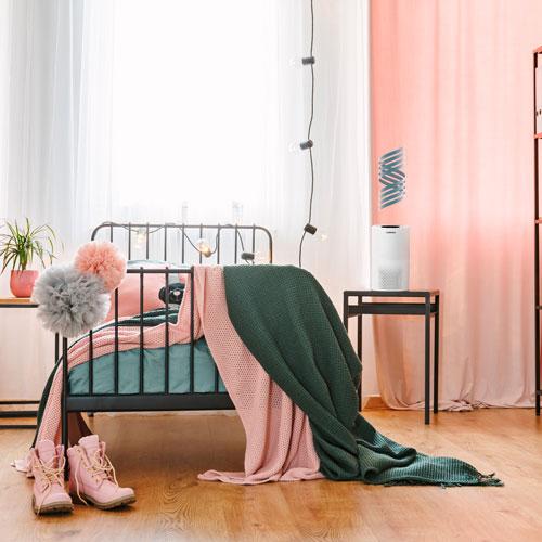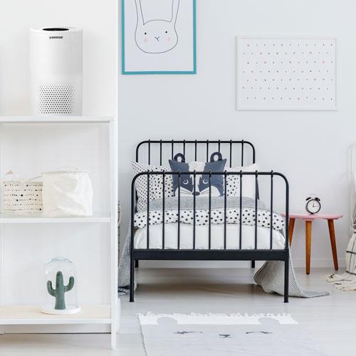 Lumière UV-C pratique qui élimine les bactéries présentes dans l’air Avec le purificateur d’air Eeese Freia HEPA H11, vous assurez un climat intérieur sain pour vous et votre famille. Bien que le Eeese Freia soit un petit purificateur d’air, il est à la fois puissant et efficace. Il est équipé d’une lampe UV-C intégrée. Les ondes courtes de la lumière UV-C pénètrent dans les bactéries présentes dans l’air et les détruisent lorsqu’elles passent dans le purificateur. En même temps, les composés organiques volatils (COV) et autres vapeurs toxiques sont éliminés de l’air. Filtre HEPA 3-en-1 qui capture les plus petites particules et absorbe les odeurs Animaux domestiques, pollen et poussières font partie des nombreux facteurs qui influencent la qualité de l’air intérieur. Même une aération régulière ne suffit pas toujours à garantir un air sain dans la pièce. Le purificateur d’air Eeese Freia est donc une excellente solution pour les espaces jusqu’à 15 m². L’air est efficacement nettoyé grâce à son filtre HEPA, qui capture même les particules les plus fines. Le Freia est particulièrement utile si vous souffrez d’allergies ou si vous souhaitez simplement maintenir un climat intérieur propre et sain pour toute la famille. Le filtre 3-en-1 intègre également du charbon actif, qui réduit efficacement les odeurs. Purificateur d’air puissant au design scandinave Le purificateur d’air élégant Eeese Freia est conçu dans un style inspiré du design scandinave, discret et raffiné, qui s’intègre facilement dans tout type d’intérieur. Léger et pratique, il pèse moins de 2 kilos et peut être déplacé facilement. Le Freia dispose de quatre vitesses de ventilation et, réglé au niveau le plus bas, il génère seulement 30 dB(A). Cela signifie qu’il peut parfaitement être utilisé dans une chambre à coucher, même pendant le sommeil. Vous pouvez également utiliser la fonction minuterie, réglable sur 2, 4 ou 8 heures. De plus, le Freia est équipé d’une lumière d’ambiance intégrée, qui peut servir de veilleuse ou de lampe de nuit douce. Freia – un produit de qualité signé Eeese Le purificateur d’air Eeese Freia fait partie de la gamme populaire de Eeese. Tous les produits de cette série sont conçus pour créer une parfaite synergie entre une connaissance approfondie du climat européen, un design scandinave élégant et épuré, et les dernières avancées technologiques.