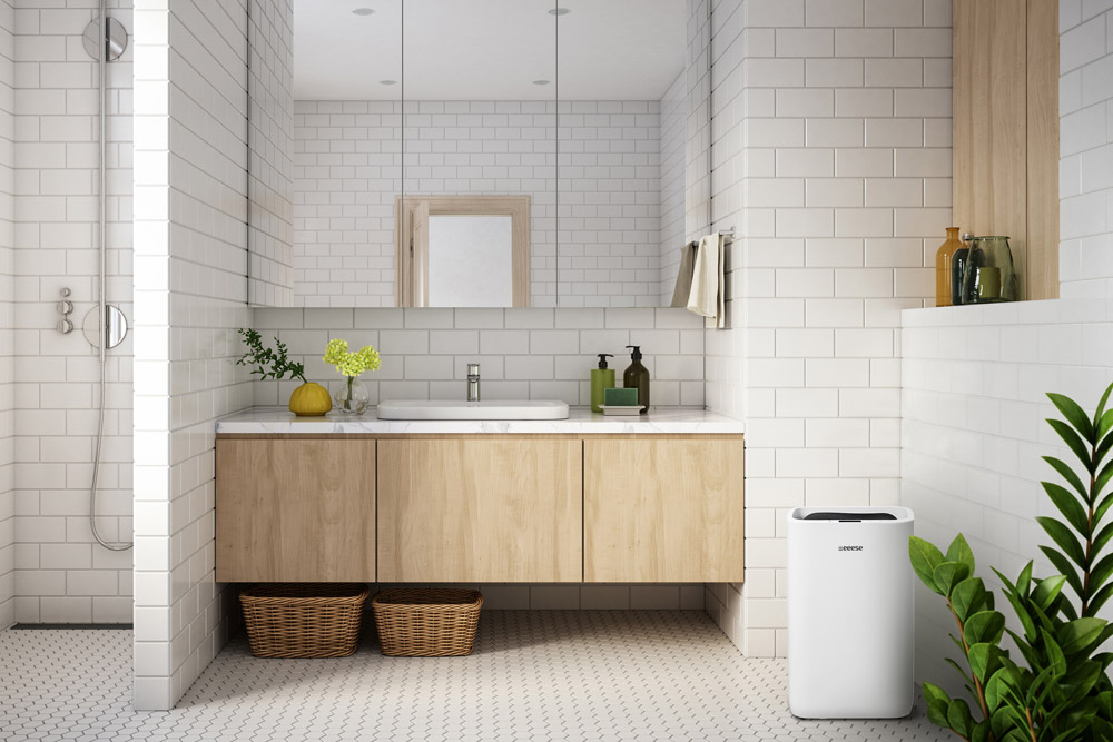 LAURÉAT ANBEFALER.COM NORVÈGE 2022 ! Le déshumidificateur Eeese Hugo 25L se distingue des autres déshumidificateurs de même taille par son niveau sonore extrêmement faible de seulement 44 dB(A). Ce déshumidificateur Eeese Hugo 25L est idéal pour toutes les pièces de la maison jusqu'à 120 m². Le Hugo peut également être utilisé dans les salles de bains, car il est classé IPX4 pour une utilisation dans les pièces humides. De plus, il a une très faible consommation électrique de seulement 290 watts. DÉSHUMIDIFICATEUR IPX4