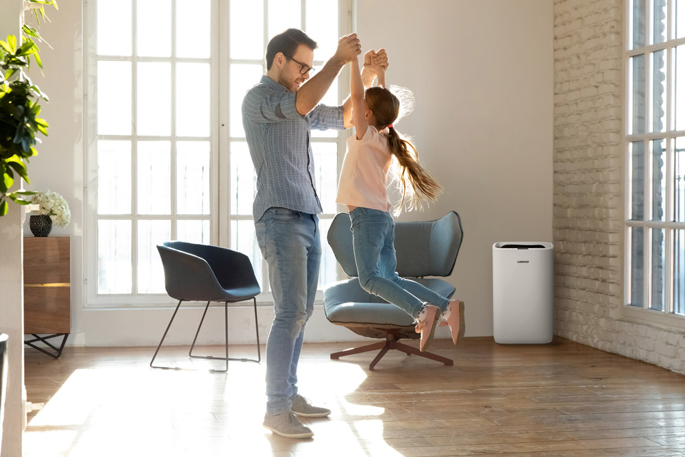 LAURÉAT ANBEFALER.COM NORVÈGE 2022 ! DÉSHUMIDIFICATEUR IPX4 Très faible consommation électrique Grâce à la fonction minuterie pratique, vous pouvez déterminer vous-même quand le déshumidificateur doit être activé. Le déshumidificateur a une faible consommation électrique de 290 watts. C'est très peu pour un déshumidificateur d'une capacité de 25 litres par jour. Le Hugo peut être raccordé directement à une évacuation à l'aide d'un tuyau d'évacuation. Cela est pratique, car cela permet de déshumidifier la salle de bains ou l'arrière-cuisine sans avoir à se soucier que le réservoir se remplisse. Si vous choisissez de ne pas utiliser le tuyau d'évacuation, le déshumidificateur s'éteint automatiquement lorsque le réservoir est plein. WiFi Commandez le déshumidificateur depuis votre téléphone. Ce déshumidificateur est équipé du WiFi, ce qui permet de le commander depuis un téléphone portable. Il est intelligent, flexible et innovant. Ce déshumidificateur est compatible avec Google Assistant. Réglage simple de l'humidité Le déshumidificateur Eeese Hugo 25L dispose d'un réglage simple et logique de l'humidité, qui permet de régler facilement le taux d'humidité souhaité dans la pièce. Ces réglages sont automatiquement enregistrés, même lorsque le déshumidificateur est éteint. Il n'est donc pas nécessaire de le régler à nouveau lors de la prochaine utilisation. Le déshumidificateur peut être utilisé dans la chambre à coucher pendant que vous dormez. Si vous utilisez un déshumidificateur Hugo 25L dans votre chambre, vous pouvez le laisser fonctionner toute la nuit sans aucun problème. Le déshumidificateur dispose d'un mode veille intelligent, facile à activer. Lorsque cette fonction est activée, le déshumidificateur fonctionne à une vitesse de ventilation réduite et à un niveau sonore de seulement 42 dB(A). Le design élégant du déshumidificateur Hugo s'intègre dans tous les intérieurs. Grâce à ses poignées pratiques, vous pouvez facilement le déplacer d'une pièce à l'autre. Vous en profitez ainsi au maximum. Hugo – un produit de qualité Eeese Le Hugo 25L d'Eeese fait partie de la série populaire d'Eeese. Tous les appareils de cette série ont été conçus dans le but de créer une synergie parfaite entre une connaissance approfondie du climat et de l'environnement européens, un design scandinave élégant et épuré et les dernières technologies. Les talents particuliers de Hugo Extrêmement silencieux – seulement 44 dB(A) WiFi - compatible avec Google Assistant Très faible consommation d'énergie - seulement 290 watts Design élégant et compact Classé IPX4 - convient pour une utilisation dans les salles de bains Filtre à air lavable Poignées pratiques - facile à déplacer Sécurité enfants Arrêt automatique lorsque le réservoir d'eau est plein Minuterie automatique