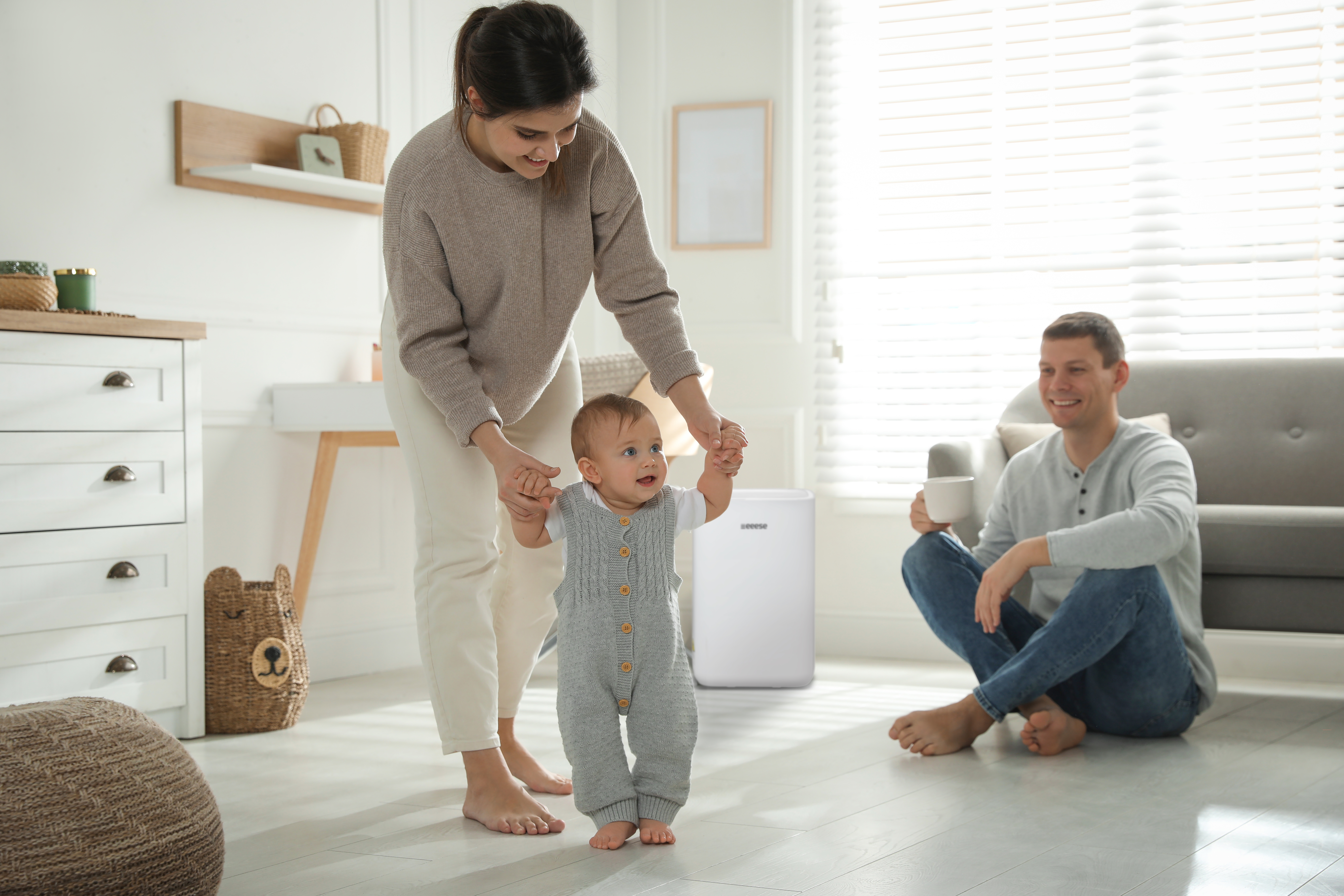 Déshumidificateur qui fonctionne uniquement lorsque cela est nécessaire La fonction minuterie pratique est facile à utiliser, afin que le déshumidificateur ne fonctionne que lorsque vous le souhaitez. Le déshumidificateur Oskar 10 L a une très faible consommation d'énergie par rapport aux autres déshumidificateurs de même capacité. Il est notamment équipé d'une fonction intelligente qui vous permet de régler le niveau d'humidité souhaité via l'écran LED. Lorsque ce niveau d'humidité est atteint, le déshumidificateur s'éteint automatiquement et se remet en marche lorsque le niveau d'humidité est à nouveau dépassé. Utilisez votre déshumidificateur Oskar dans la salle de bains La salle de bains est l'une des pièces où l'humidité est la plus importante. Après un bain chaud, il est agréable de pouvoir allumer le déshumidificateur Oskar 10L pour ramener rapidement l'humidité de l'air à un niveau normal dans la pièce. Le déshumidificateur Oskar 10L est classé IPX4 pour les pièces humides, vous pouvez donc installer l'Eeese Oskar 10L en toute sécurité dans la salle de bains. Évacuation permanente pour ne pas avoir à vider le réservoir d'eau Le déshumidificateur s'éteint automatiquement lorsque le réservoir est plein, afin d'éviter toute consommation d'énergie inutile. De plus, vous pouvez également utiliser le déshumidificateur avec une évacuation permanente, en le raccordant directement à l'évacuation à l'aide d'un tuyau. Vous n'avez alors plus besoin de vider le réservoir d'eau. Le déshumidificateur est également équipé d'un filtre lavable et d'une fonction de dégivrage automatique. Le déshumidificateur Oskar 10 L pèse 9,4 kg et est doté de poignées ergonomiques intégrées sur les côtés. Cela permet de le déplacer facilement selon vos besoins. Oskar 10 L – un produit de qualité Eeese L'Oskar 10 L fait partie de la gamme populaire de déshumidificateurs Eeese. Tous les déshumidificateurs de cette gamme ont été conçus dans le but de créer une synergie parfaite entre une connaissance approfondie du climat et de l'environnement européens, un design scandinave élégant et épuré et les dernières technologies.