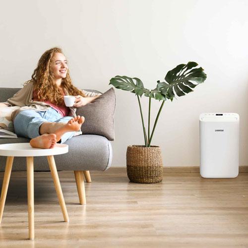 Fonction de séchage pour les vêtements Efficace, plus respectueux de l'environnement et moins gourmand en électricité. Dans de nombreux foyers, un sèche-linge est nécessaire pour sécher rapidement les vêtements de toute la famille. Là encore, le déshumidificateur Eeese Otto 13L peut vous aider. Le déshumidificateur dispose d'une fonction de séchage des vêtements intégrée qui peut être commandée via l'écran fonctionnel. Un simple clic sur l'écran suffit pour lancer la fonction pratique de séchage des vêtements à oscillation, qui sèche les vêtements très rapidement. Avec une consommation électrique de seulement 145 watts, ce déshumidificateur est une alternative moins coûteuse et plus intelligente au sèche-linge. Utilisez votre déshumidificateur Otto dans la salle de bains La salle de bains est l'une des pièces où l'humidité est la plus importante. Après un bain chaud, il est agréable de pouvoir allumer le déshumidificateur Otto 13L pour ramener rapidement l'humidité de l'air à un niveau normal dans la pièce. Le déshumidificateur Otto 13L est classé IPX4 pour les pièces humides, vous pouvez donc installer l'Eeese Otto 13L en toute sécurité dans la salle de bains. Régulation automatique de l'humidité Le déshumidificateur Eeese Otto 13L est équipé d'un mode automatique qui contrôle l'humidité dans la pièce et élimine l'excès d'humidité. L'écran du déshumidificateur vous permet de régler le taux d'humidité souhaité afin d'obtenir exactement le taux d'humidité souhaité dans la pièce. Ces réglages sont automatiquement enregistrés, même lorsque le déshumidificateur est éteint, vous n'avez donc pas besoin de les régler à nouveau la prochaine fois. WiFi – contrôlez le déshumidificateur via votre téléphone ou Google Assistant Ce déshumidificateur est équipé du WiFi, ce qui vous permet de le contrôler facilement via votre téléphone portable. Il est intelligent, flexible et innovant. Le déshumidificateur est également compatible avec Google Assistant. Facile à utiliser Avec un poids de seulement 10,2 kg, le déshumidificateur est facile à déplacer en fonction de la pièce où vous souhaitez l'utiliser. Le déshumidificateur est équipé de poignées pratiques qui s'intègrent parfaitement dans son design. Très faible consommation d'énergie La fonction minuterie pratique vous permet de déterminer vous-même quand le déshumidificateur doit être activé. Le déshumidificateur a une faible consommation d'énergie de 145 watts. C'est très peu pour un déshumidificateur capable de déshumidifier jusqu'à 13 litres par jour. L'Otto peut être raccordé directement à une évacuation dans la maison à l'aide d'un tuyau d'évacuation. C'est un avantage considérable, car cela vous permet de garder la pièce sèche sans avoir à vous soucier que le réservoir d'eau se remplisse. Si vous choisissez de ne pas raccorder le tuyau d'évacuation, le déshumidificateur dispose d'une fonction d'arrêt automatique avec un indicateur de réservoir plein, qui vous avertit par une alarme et éteint même le déshumidificateur lorsque le réservoir est plein. Le réservoir a une capacité de 2,3 litres. Le déshumidificateur au bruit discret Vous pouvez laisser l'Otto 13L allumé toute la nuit sans problème, car il dispose d'un mode veille intelligent, facile à activer. Lorsque cette fonction est activée, le déshumidificateur fonctionne à faible vitesse et avec un niveau sonore de seulement 35 dB(A). Eeese Otto 13L – un produit de qualité Eeese Le déshumidificateur Eeese Otto 13L fait partie de la série populaire Eeese. Tous les appareils de cette série ont été conçus dans le but de créer une synergie parfaite entre une connaissance approfondie du climat et de l'environnement européens, un design scandinave élégant et épuré et les dernières technologies. Les atouts particuliers de l'Otto Design élégant et compact Capacité de déshumidification de 13 litres/jour Wi-Fi – compatible avec Google Assistant Très silencieux – seulement 35 dB(A) Très faible consommation d'énergie – seulement 145 watts Fonction de séchage des vêtements par oscillation Fonction minuterie Préfiltre Ioniseur intégré Classé IPX4 – convient également à une utilisation dans des pièces humides Poignées pratiques – très facile à déplacer Sécurité enfants Arrêt automatique lorsque le réservoir d'eau est plein