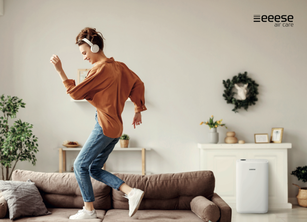Fonction de séchage pour les vêtements Efficace, plus respectueux de l'environnement et moins gourmand en électricité. Dans de nombreux foyers, un sèche-linge est indispensable pour sécher rapidement les vêtements de toute la famille. Là encore, le déshumidificateur Eeese Otto 20L peut vous aider. Le déshumidificateur dispose d'une fonction de séchage des vêtements intégrée qui peut être commandée via l'écran fonctionnel. Un simple clic sur l'écran suffit pour démarrer la fonction pratique de séchage des vêtements à oscillation, qui sèche les vêtements très rapidement. Avec une consommation électrique de seulement 245 watts, ce déshumidificateur est une alternative moins coûteuse et plus intelligente au sèche-linge. Utilisez votre déshumidificateur Otto dans la salle de bains La salle de bains est l'une des pièces où l'humidité est la plus importante. Après un bain chaud, il est agréable de pouvoir allumer le déshumidificateur Otto 20L pour rétablir rapidement un taux d'humidité normal dans la pièce. Le déshumidificateur Otto 20L est classé IPX4 pour les pièces humides, vous pouvez donc installer l'Eeese Otto 20L en toute sécurité dans la salle de bains. Régulation automatique de l'humidité Le déshumidificateur Eeese Otto 20L est équipé d'un mode automatique qui contrôle l'humidité dans la pièce et élimine l'excès d'humidité. L'écran du déshumidificateur vous permet de régler le taux d'humidité souhaité afin d'obtenir exactement le taux d'humidité souhaité dans la pièce. Ces réglages sont automatiquement enregistrés, même lorsque le déshumidificateur est éteint, vous n'avez donc pas besoin de les régler à nouveau la prochaine fois. WiFi – contrôlez le déshumidificateur via votre téléphone ou Google Assistant Ce déshumidificateur est équipé du WiFi, ce qui vous permet de le contrôler facilement via votre téléphone portable. Il est intelligent, flexible et innovant. Le déshumidificateur est également compatible avec Google Assistant. Facile à utiliser Avec un poids de seulement 15,0 kg, le déshumidificateur est facile à déplacer en fonction de la pièce où vous souhaitez l'utiliser. Le déshumidificateur est équipé de poignées pratiques qui s'intègrent parfaitement dans son design. Très faible consommation d'énergie La fonction minuterie pratique vous permet de déterminer vous-même quand le déshumidificateur doit être activé. Le déshumidificateur a une faible consommation d'énergie de 245 watts. C'est très peu pour un déshumidificateur capable de déshumidifier jusqu'à 20 litres par jour. L'Otto peut être raccordé directement à une évacuation dans la maison à l'aide d'un tuyau d'évacuation. C'est un avantage considérable, car cela vous permet de garder la pièce sèche sans avoir à vous soucier que le réservoir d'eau ne se remplisse. Si vous choisissez de ne pas raccorder le tuyau d'évacuation, le déshumidificateur dispose d'une fonction d'arrêt automatique avec un indicateur de réservoir plein, qui vous avertit par une alarme et éteint même le déshumidificateur lorsque le réservoir est plein. Le réservoir a une capacité de 4,5 litres. Le déshumidificateur au bruit discret Vous pouvez laisser l'Otto 20L allumé toute la nuit sans problème, car il dispose d'un mode veille intelligent, facile à activer. Lorsque cette fonction est activée, le déshumidificateur fonctionne à faible vitesse et avec un niveau sonore de seulement 40 dB(A). Eeese Otto 20L – un produit de qualité Eeese Le déshumidificateur Eeese Otto 20L fait partie de la série populaire Eeese. Tous les appareils de cette série ont été conçus dans le but de créer une synergie parfaite entre une connaissance approfondie du climat et de l'environnement européens, un design scandinave élégant et épuré et les dernières technologies. Les atouts particuliers de l'Otto Design élégant et compact Capacité de déshumidification de 20 litres/jour Wi-Fi – compatible avec Google Assistant Extrêmement silencieux – seulement 44 dB(A) Très faible consommation d'énergie – seulement 245 watts Fonction de séchage des vêtements par oscillation Fonction minuterie Filtre à air antibactérien Ioniseur intégré Classé IPX4 – convient également à une utilisation dans des pièces humides Poignées pratiques – très facile à déplacer Sécurité enfants Arrêt automatique lorsque le réservoir d'eau est plein