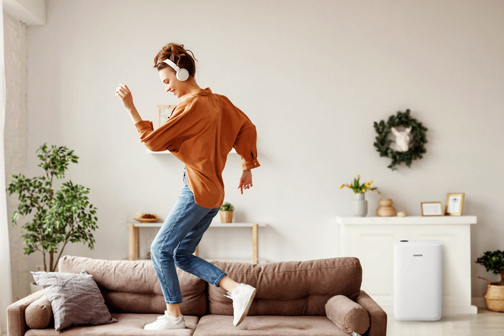 Fonction de séchage pour les vêtements Efficace, plus respectueux de l'environnement et moins gourmand en électricité. Dans de nombreux foyers, un sèche-linge est indispensable pour sécher rapidement les vêtements de toute la famille. Là encore, le déshumidificateur Eeese Otto 25L peut vous aider. Le déshumidificateur dispose d'une fonction de séchage des vêtements intégrée qui peut être commandée via l'écran fonctionnel. D'un simple clic sur l'écran, la fonction pratique de séchage des vêtements à oscillation est activée, ce qui permet de sécher les vêtements encore plus rapidement. Avec une consommation électrique de seulement 290 watts, ce déshumidificateur est une alternative plus économique et plus intelligente au sèche-linge. Utilisez votre déshumidificateur Otto dans la salle de bains La salle de bains est l'une des pièces où l'humidité est la plus importante. Après un bain chaud, il est agréable de pouvoir allumer le déshumidificateur Otto 25L pour ramener rapidement l'humidité de l'air à un niveau normal dans la pièce. Le déshumidificateur Otto 25L est classé IPX4 pour les pièces humides, vous pouvez donc installer l'Eeese Otto 25L en toute sécurité dans la salle de bains. Régulation automatique de l'humidité Le déshumidificateur Eeese Otto 25L est équipé d'un mode automatique qui contrôle l'humidité dans la pièce et élimine l'excès d'humidité. L'écran du déshumidificateur vous permet de régler le taux d'humidité souhaité afin d'obtenir exactement le taux d'humidité souhaité dans la pièce. Ces réglages sont automatiquement enregistrés, même lorsque le déshumidificateur est éteint, vous n'avez donc pas besoin de les régler à nouveau la prochaine fois. WiFi – contrôlez le déshumidificateur via votre téléphone ou Google Assistant Ce déshumidificateur est équipé du WiFi, ce qui vous permet de le contrôler facilement via votre téléphone portable. Il est intelligent, flexible et innovant. Le déshumidificateur est également compatible avec Google Assistant. Facile à utiliser Avec un poids de seulement 15,7 kg, le déshumidificateur est facile à déplacer en fonction de la pièce où vous souhaitez l'utiliser. Le déshumidificateur est équipé de poignées pratiques qui s'intègrent parfaitement dans son design. Très faible consommation d'énergie Grâce à la fonction minuterie pratique, vous pouvez déterminer vous-même quand le déshumidificateur doit être activé. Le déshumidificateur a une faible consommation d'énergie de 290 watts. C'est très peu pour un déshumidificateur capable de déshumidifier jusqu'à 25 litres par jour. L'Otto peut être raccordé directement à une évacuation dans la maison à l'aide du tuyau d'évacuation fourni. C'est un avantage considérable, car cela vous permet de garder la pièce sèche sans avoir à vous soucier que le réservoir d'eau ne se remplisse. Si vous choisissez de ne pas raccorder le tuyau d'évacuation, le déshumidificateur dispose d'une fonction d'arrêt automatique avec un indicateur de réservoir plein, qui vous avertit par une alarme et éteint même le déshumidificateur lorsque le réservoir est plein. Le réservoir a une capacité de 4,5 litres. Le déshumidificateur au bruit discret Vous pouvez laisser l'Otto 25L allumé toute la nuit sans problème, car il dispose d'un mode veille intelligent, facile à activer. Lorsque cette fonction est activée, le déshumidificateur fonctionne à faible vitesse et avec un niveau sonore de seulement 42 dB(A). Eeese Otto 25L – un produit de qualité Eeese Le déshumidificateur Eeese Otto 25L fait partie de la série populaire Eeese. Tous les appareils de cette série sont conçus dans le but de créer une synergie parfaite entre une connaissance approfondie du climat et de l'environnement européens, un design scandinave élégant et épuré et les dernières technologies. Les atouts particuliers de l'Otto Design élégant et compact Capacité de déshumidification de 25 litres/jour Wi-Fi – compatible avec Google Assistant Extrêmement silencieux – seulement 44 dB(A) Très faible consommation d'énergie – seulement 290 watts Fonction de séchage des vêtements par oscillation Fonction minuterie Filtre à air antibactérien Ioniseur intégré Classé IPX4 – convient également à une utilisation dans des pièces humides Poignées pratiques – très facile à déplacer Sécurité enfants Arrêt automatique lorsque le réservoir d'eau est plein
