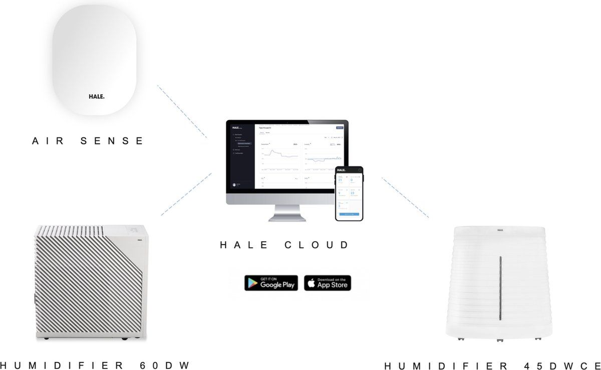 Le Hale Air Sense est un capteur de qualité de l’air professionnel et haut de gamme qui offre une surveillance continue de l’air intérieur. Grâce à des capteurs précis, l’Air Sense mesure le CO₂, les particules fines (PM), les TVOC, la température et l’humidité relative. Les mesures sont présentées de manière claire et permettent de déterminer rapidement quand une ventilation est nécessaire. Le Hale Air Sense se connecte via Wi-Fi (2,4 GHz) et s’installe facilement. Grâce à la plateforme HALE Cloud, toutes les données peuvent être consultées sur smartphone, tablette ou ordinateur, en temps réel ou sur de longues périodes. L’indication visuelle du CO₂ (vert, orange, rouge) alerte immédiatement en cas de dégradation de la qualité de l’air. Développé avec des composants de haute qualité et des algorithmes avancés issus de la recherche scientifique, le Hale Air Sense peut être utilisé de manière autonome ou comme système de commande intelligent pour les appareils HALE. Il contribue à un climat intérieur plus sain et plus confortable à la maison, au bureau ou dans des environnements professionnels.
