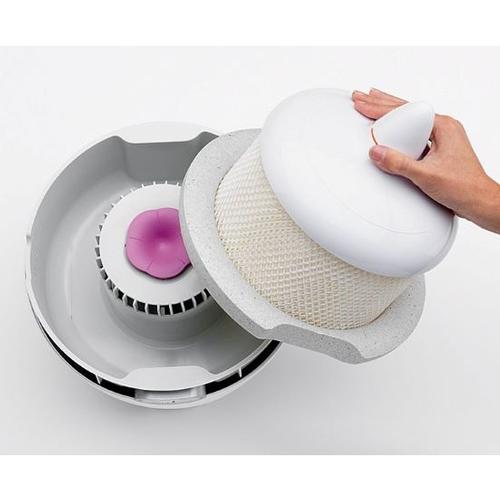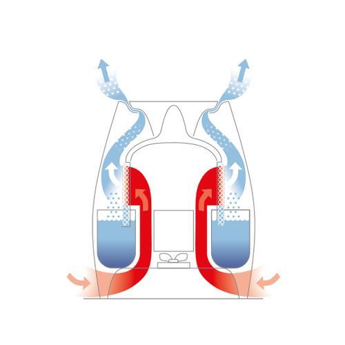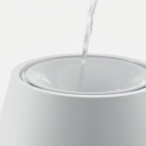 Humidificateur Boneco 2441. Une parfaite harmonie entre forme et fonction. Ce n’est pas un hasard si cet humidificateur Boneco a remporté le prestigieux “Red Dot Design Award 2008”. La combinaison d’un design esthétique et d’une grande simplicité d’utilisation a permis à cet appareil de recevoir cette distinction internationale renommée, aux côtés de marques telles que Rolls Royce et Apple Macintosh. Après avoir mis l’humidificateur en marche, l’appareil se remplit par le dessus à l’aide d’un arrosoir. Le fonctionnement de ce nouvel humidificateur Boneco 2441 repose sur le principe de l’évaporation à eau froide. Un élément filtrant spécialement conçu est immergé dans l’eau. Un ventilateur aspire l’air sec de la pièce et le fait passer à travers le filtre humide, permettant à l’eau de s’évaporer naturellement jusqu’à l’obtention d’un taux d’humidité idéal. Un curseur permet de régler le ventilateur en mode silencieux ou en mode intensif. L’air est simultanément lavé, ce qui signifie que les poussières et les odeurs sont éliminées. L’Ionic Silver Stick (ISS) maintient le réservoir d’eau de l’humidificateur exempt de bactéries.