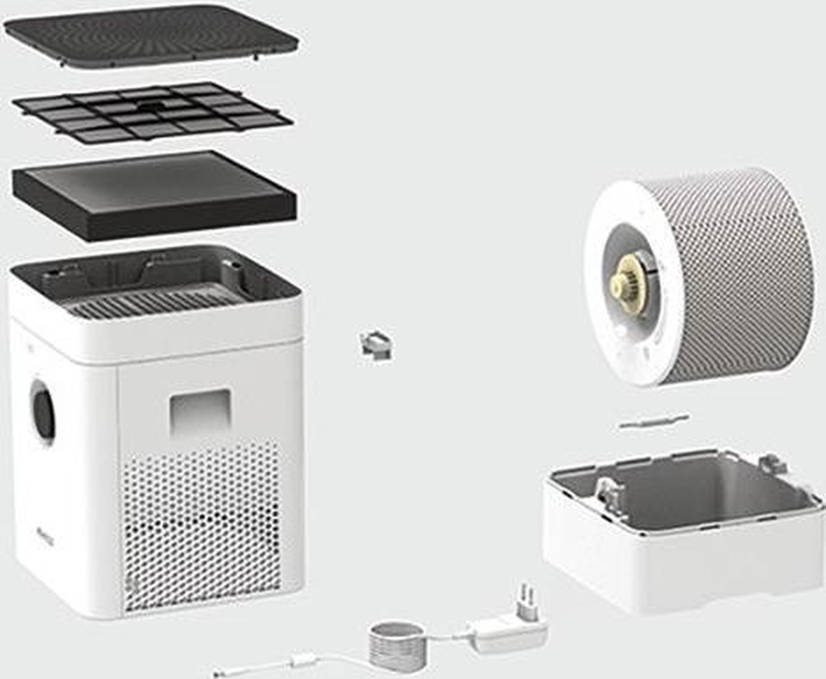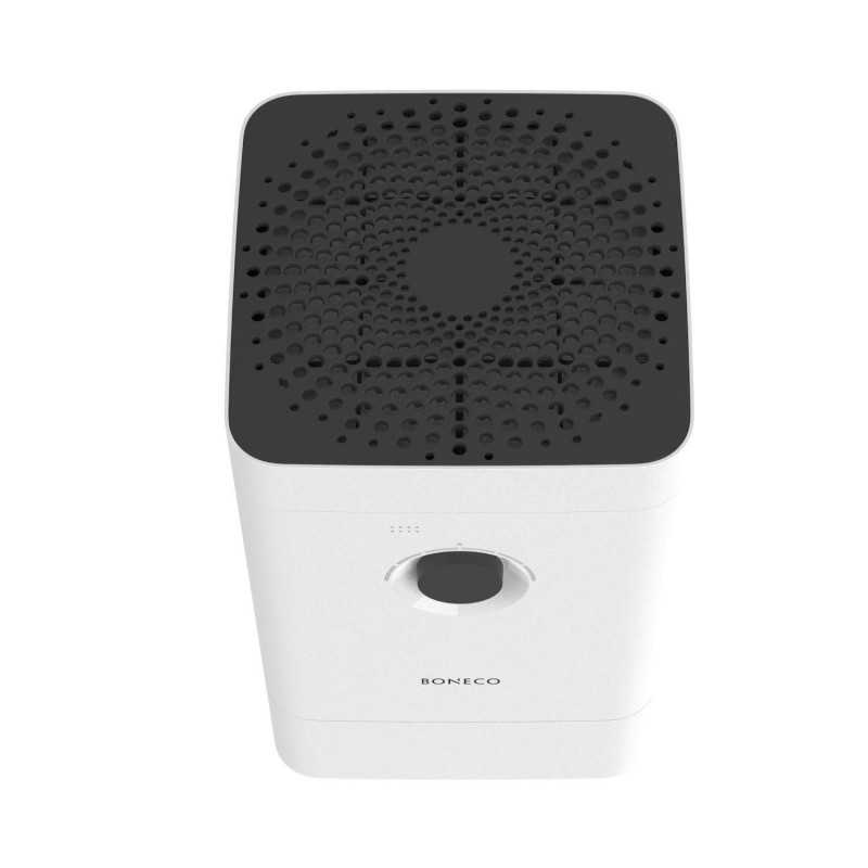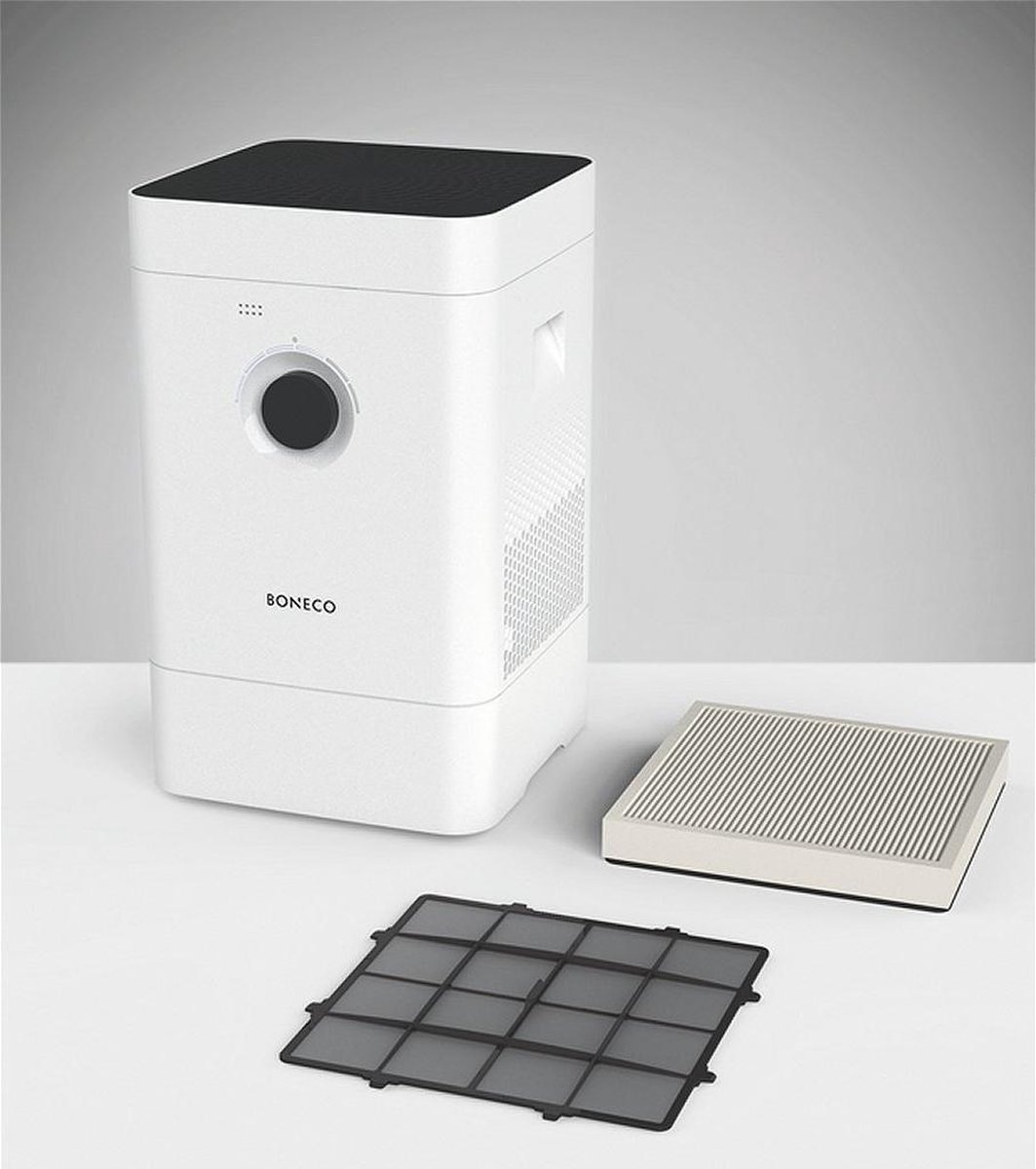 BONECO H300 humidificateur et laveur d’air hybride - le multitalent avec filtre à pollen Ce multitalent peut être utilisé comme purificateur d’air, humidificateur ou en mode hybride (combinaison humidification et purification) et est conçu pour des pièces jusqu’à 50 m² / 125 m³. Le BONECO H300 offre d’excellentes performances en humidification et en purification de l’air, garantissant une qualité de l’air saine et hygiénique dans des environnements privés ou professionnels tels que les bureaux, chambres ou salons. Idéal pour les personnes allergiques. L’utilisation du BONECO Hybrid est simple. Une simple pression sur un bouton suffit pour démarrer l’appareil, ou vous pouvez utiliser l’application BONECO via la connexion Wi-Fi. Programmez facilement votre climat de confort personnel en réglant l’humidité et la température. Le H300 s’occupe du reste. Vous pouvez choisir entre les modes de fonctionnement: Humidificateur, Purificateur ou Hybride, ainsi que les modes spéciaux SLEEP (pour une nuit reposante) et BABY (idéal pour les jeunes familles). Le compartiment à arômes intégré permet d’ajouter votre parfum préféré à l’aide d’huiles essentielles. L’appareil est également équipé d’une minuterie ON/OFF. La mesure et la régulation de l’humidité relative actuelle s’effectuent en temps réel grâce à l’hygromètre intégré. À l’aide du bouton rotatif, vous pouvez choisir parmi 6 niveaux de puissance pour un réglage personnalisé ou sélectionner le mode préprogrammé pour une humidité optimale. Le HYBRID H300 apporte un véritable bien-être à votre intérieur. Le BONECO H300 Hybrid est très économe en énergie. Un préfiltre permanent et le filtre hybride supplémentaire (filtre à charbon actif + filtre HEPA) garantissent un air sain et exempt de germes. Ils filtrent les cheveux, la poussière domestique, les particules fines, les bactéries et les virus, tout en absorbant les odeurs désagréables. Le tapis évaporateur est facile à nettoyer et assure une humidification naturelle de l’air. Tous les composants peuvent être nettoyés facilement au lave-linge ou au lave-vaisselle. Caractéristiques Convient pour des pièces jusqu’à 50 m² / 125 m³ (Capacité d’humidification: 350 ml/heure) Faible consommation d’énergie Consommation électrique: 9,6 W CADR particules: < 65 m³/h Système hybride 3-en-1 3 modes de fonctionnement: Humidificateur, Purificateur ou Hybride Commande simple via bouton rotatif ou application 6 niveaux de puissance (réglages individuels) et mode préprogrammé pour une humidité optimale Hygromètre intégré Mesure et régulation de l’humidité en temps réel Application BONECO (Wi-Fi) avec navigation intuitive Modes SLEEP et BABY Minuterie ON/OFF Tapis évaporateur (accessoire) lavable en machine ou au lave-vaisselle Filtre hybride: charbon actif + filtre HEPA Préfiltre permanent Réservoir d’eau: 4,5 litres Arrêt automatique lorsque le réservoir est vide (LED AUTO rouge) Remplissage facile du réservoir (par le haut) Composants de haute qualité pour une longue durée de vie Niveau sonore: 28 – 51 dB(A) Compartiment à parfum pour huiles essentielles Livré avec Ionic Silver Stick (ISS)
