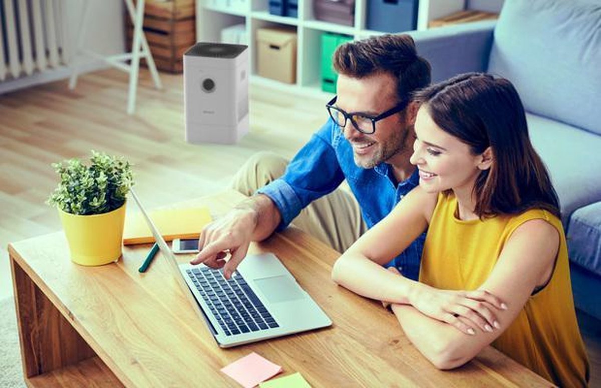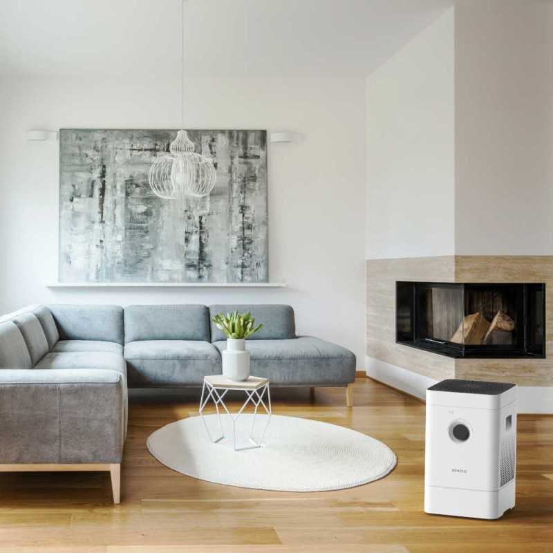 L’humidificateur et purificateur d’air hybride Bluetooth Boneco est équipé d’un tapis évaporateur rotatif en matière synthétique, offrant d’excellentes performances de diffusion de l’humidité. Le Boneco H300 assure une évaporation à “eau douce”, empêchant le dépôt de particules de calcaire. Il convient aux pièces jusqu’à 125 m³. Pendant l’humidification, les particules de poussière en suspension sont “lavées” de l’air. L’air est également purifié de manière intensive grâce au filtre HEPA (particules fines), inclus de série.
