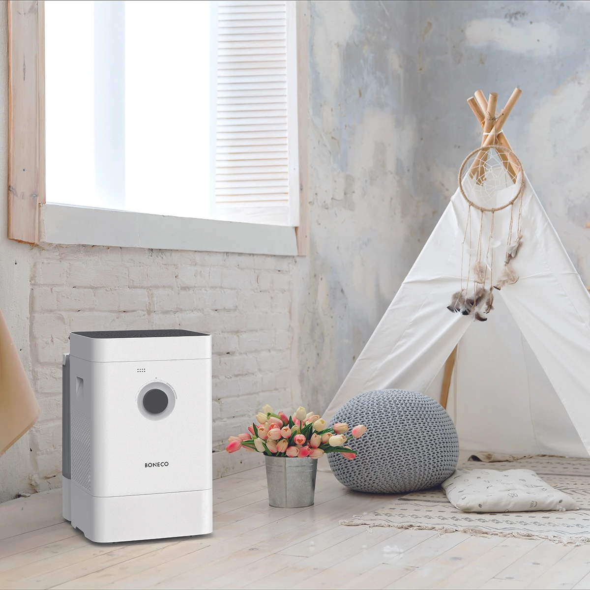 Le BONECO H400 humidificateur et purificateur d’air hybride est un système HYBRID 3-en-1. Cet appareil polyvalent peut être utilisé comme humidificateur, purificateur d’air ou en mode hybride combiné. Son système innovant d’humidification et de filtration garantit une qualité de l’air comparable à l’air pur de la nature intacte. Grâce à ses performances exceptionnelles en humidification et purification, le BONECO H400 humidifie et purifie efficacement l’air ambiant dans des pièces jusqu’à 60 m² / 150 m³, telles que les bureaux, chambres ou salons. Son réservoir d’eau extra large de 12 litres assure une longue durée de fonctionnement. L’utilisation est très simple et les fonctions et modes supplémentaires peuvent être facilement réglés via l’application BONECO. BONECO – healthy air