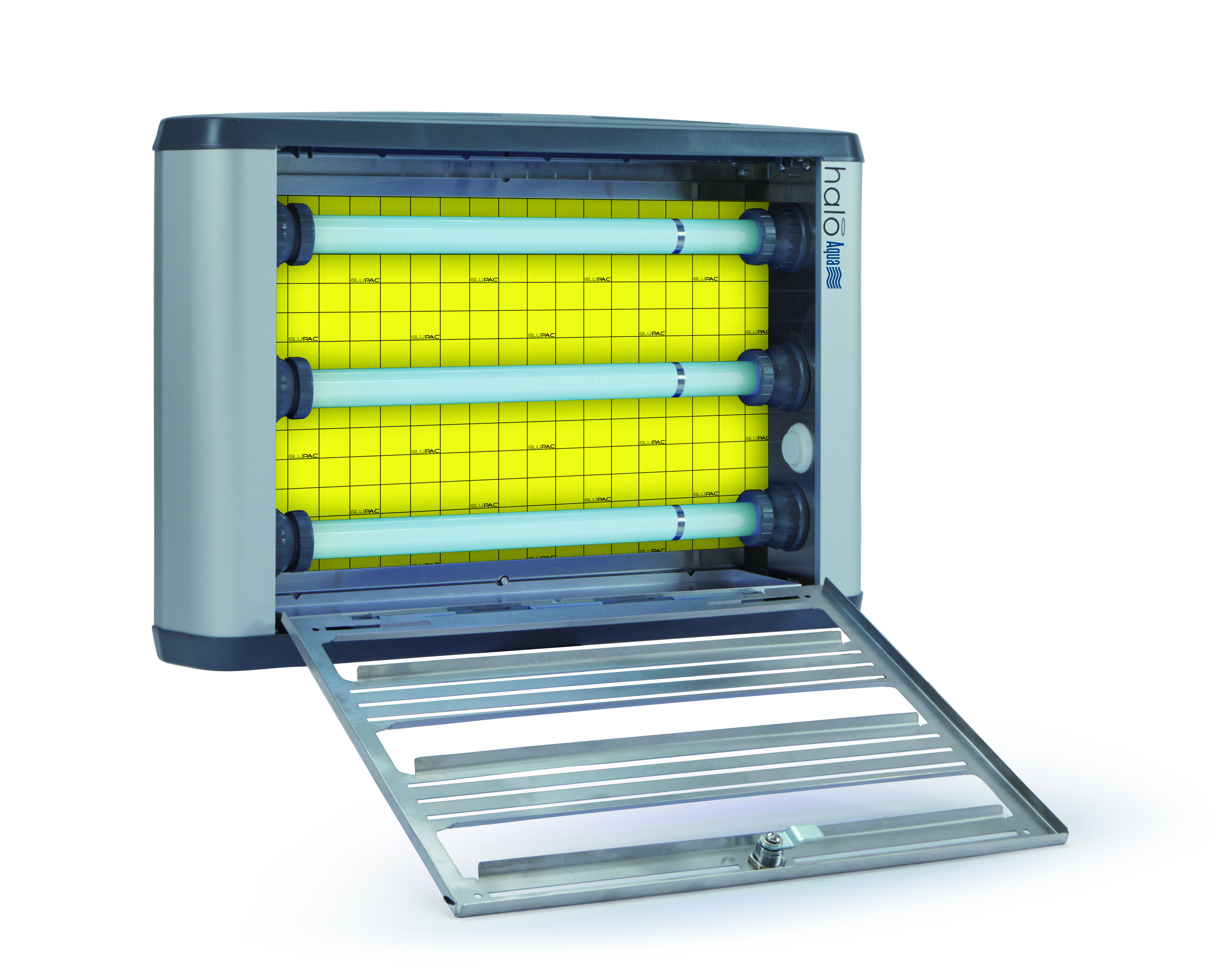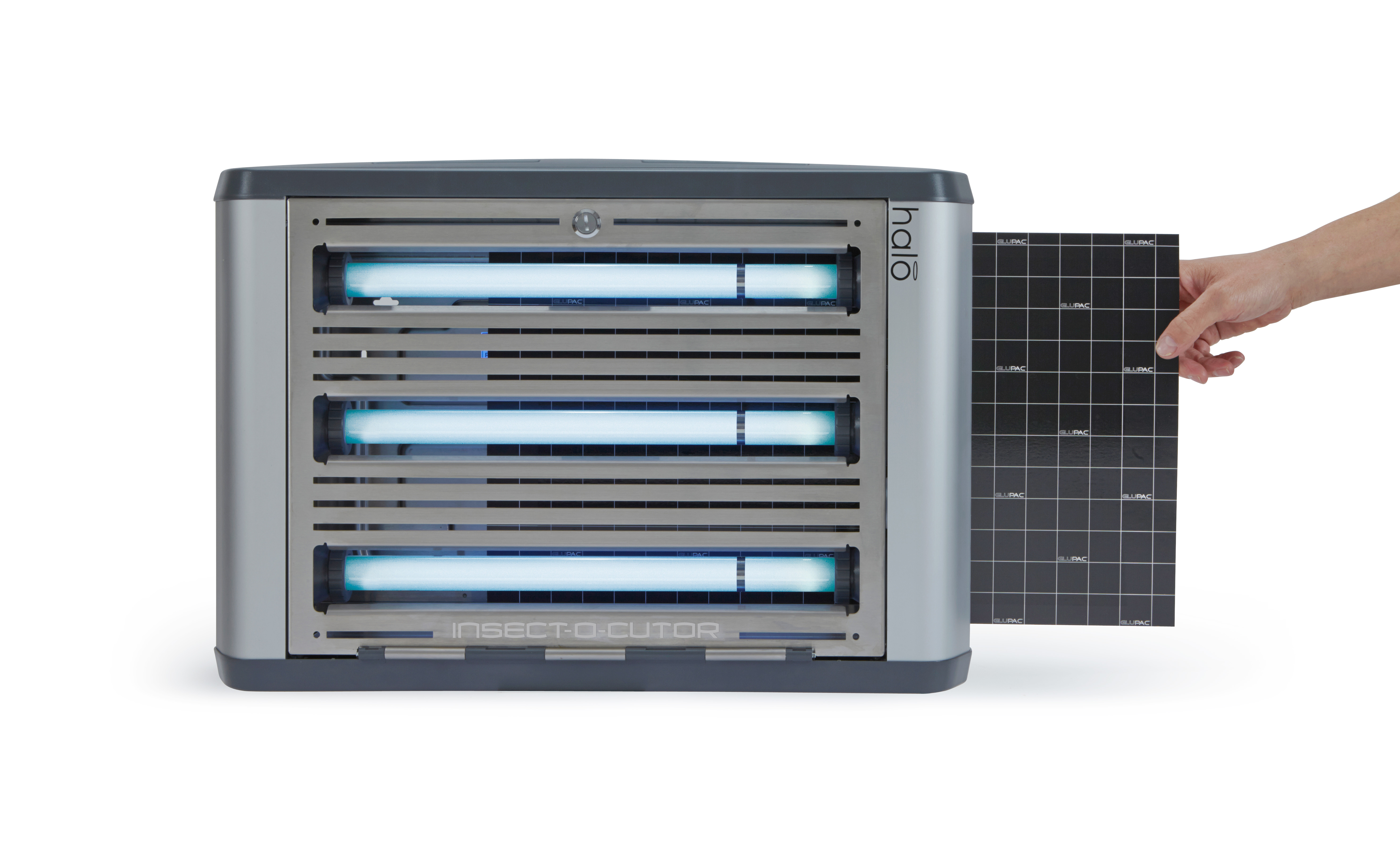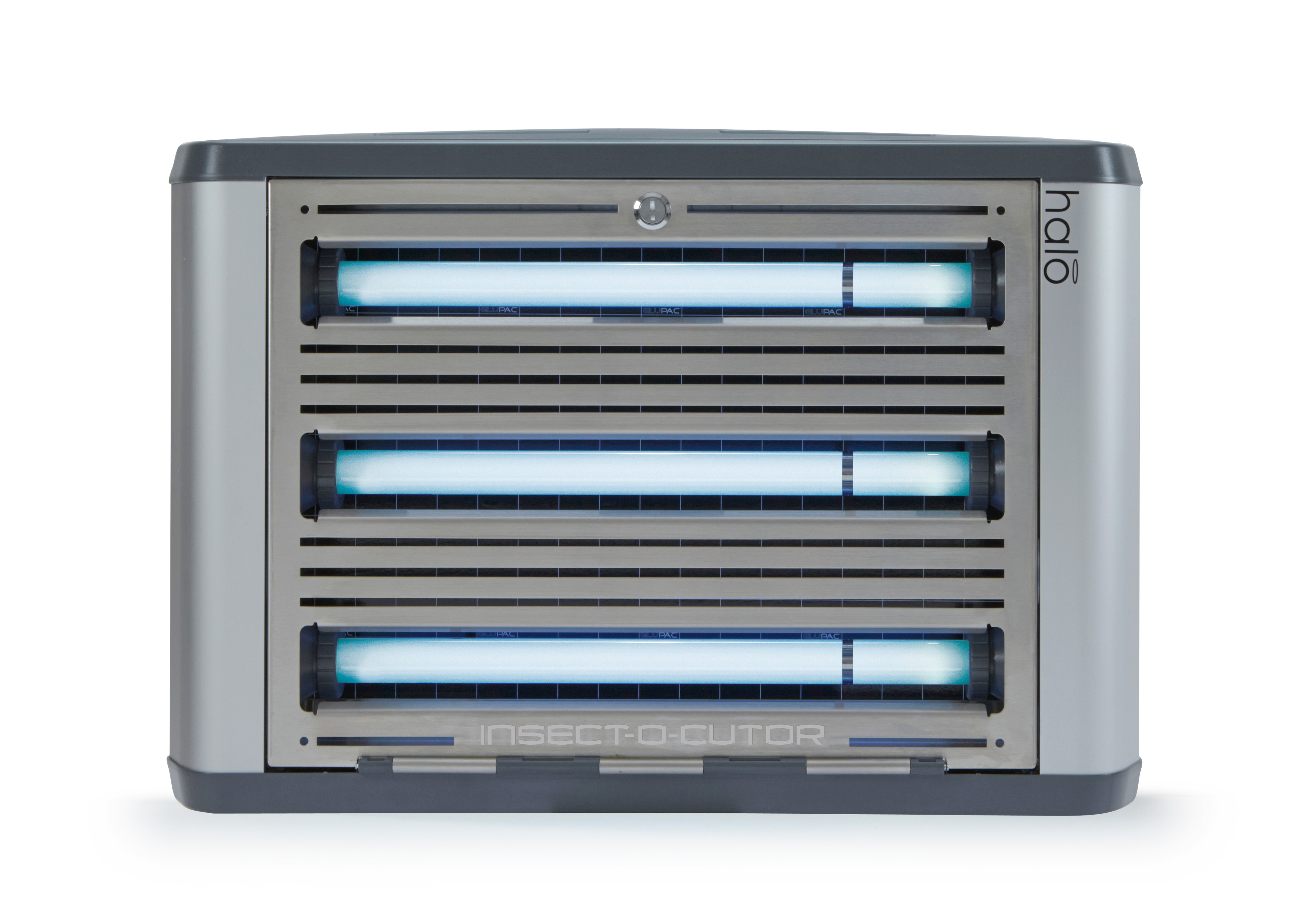 Insect-O-Cutor Halo 45 Aqua UV – Piège à insectes pour environnements humides Le piège à insectes Insect-O-Cutor Halo 45 Aqua UV fait partie de la vaste gamme Halo® et est conçu pour une utilisation dans des environnements exigeants. Il constitue la solution idéale pour les zones humides ou les espaces nécessitant un nettoyage à l’eau. Cet appareil, classé IP45 (résistant aux projections d’eau), allie efficacité, modernité et discrétion. L’unité à plaque adhésive est équipée de la feuille collante brevetée Glupac® avec stabilisateur UV et couvre une surface jusqu’à 120 m². Le modèle double face est doté de tubes UV à revêtement FEP incassables et d’un boîtier robuste en acier inoxydable 316. L’entretien est simplifié grâce au panneau avant pivotant, et les options d’installation sont multiples : montage mural vertical ou horizontal. Également disponible en version Insect-O-Cutor Halo 2x45 Aqua UV (double face – 240 m²). D’autres modèles de la gamme Halo® sont disponibles en 15, 30 (simple ou double face) ou 45 W (sans classification IP45).