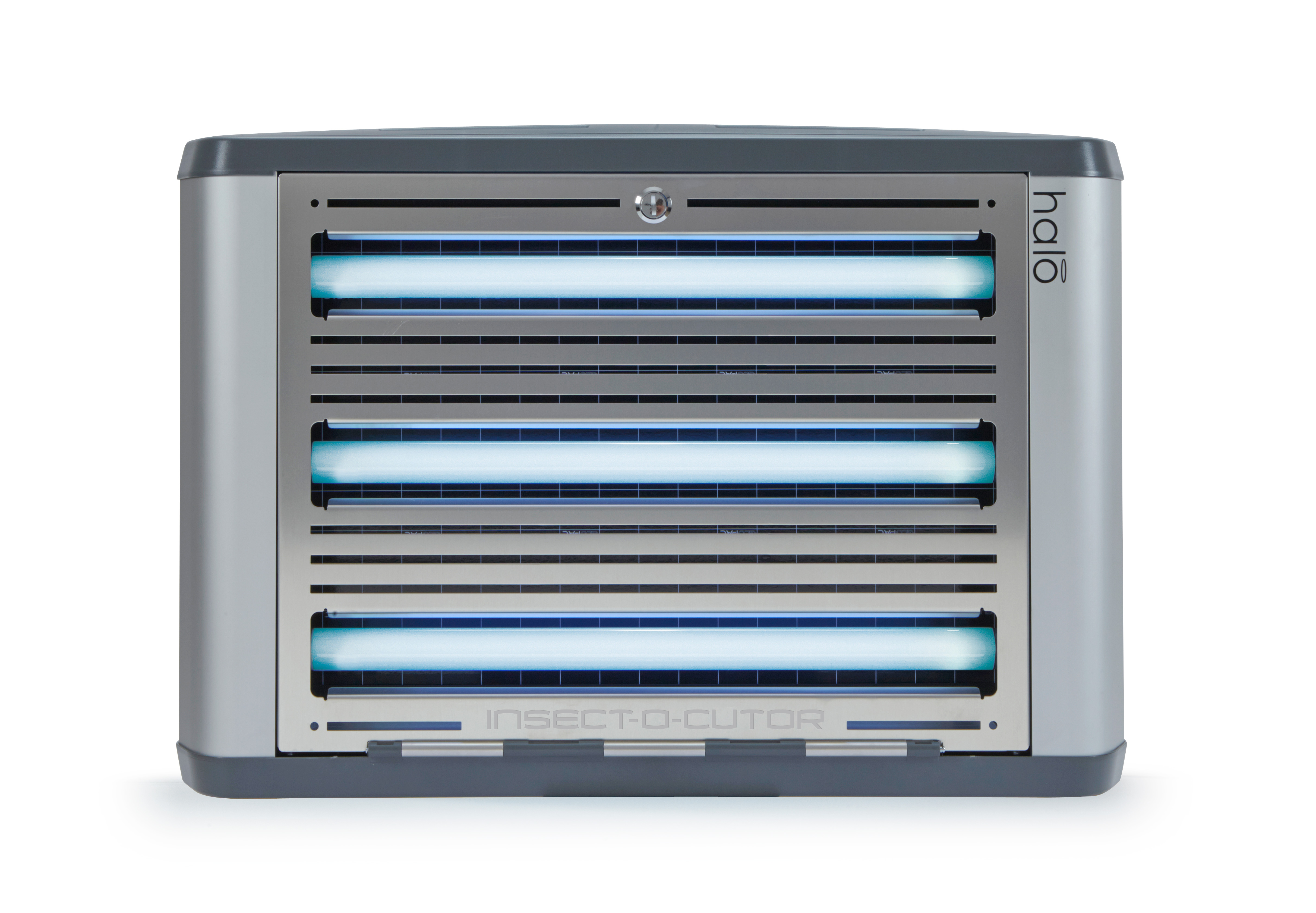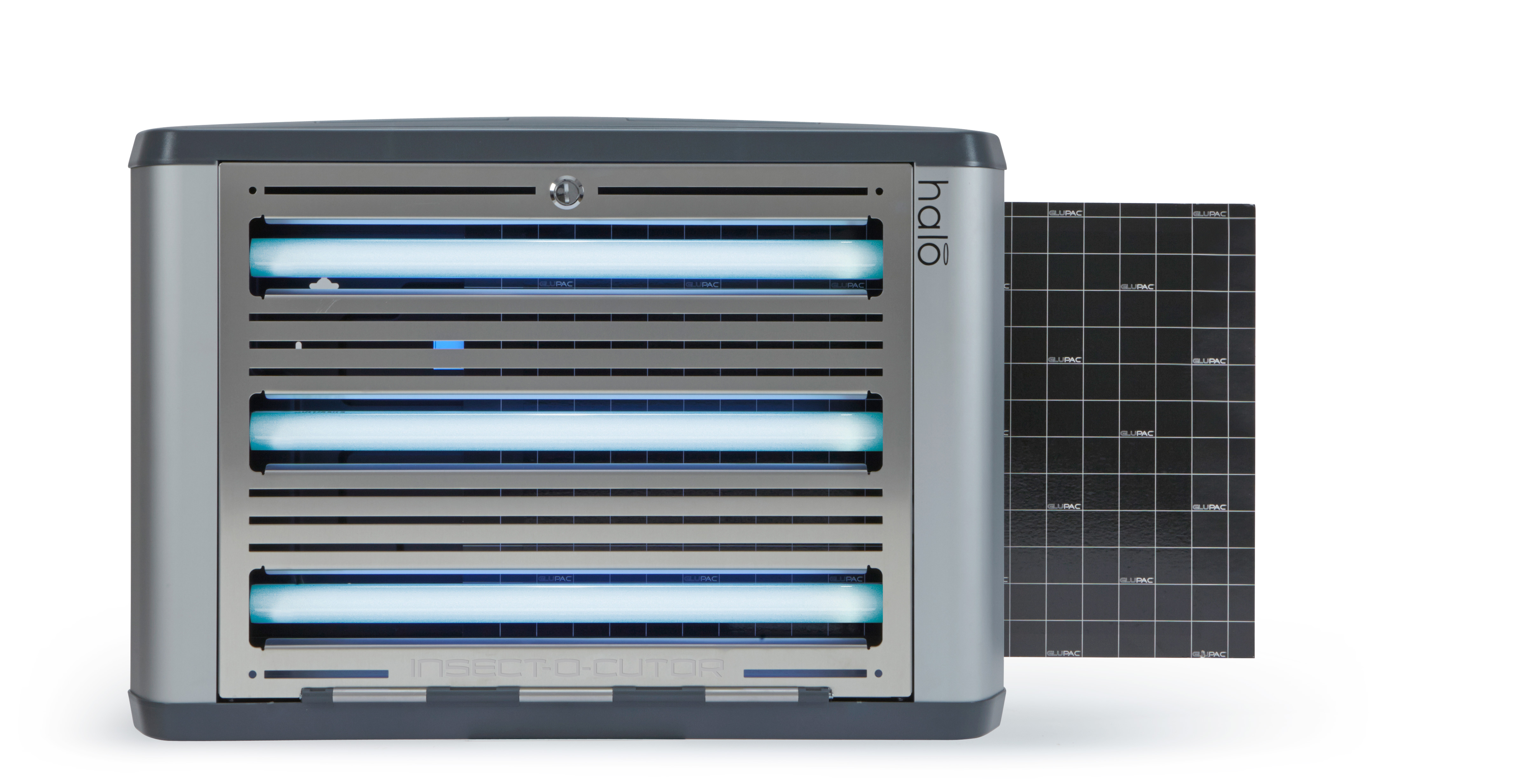 Insect-O-Cutor Halo45 UV – Piège à insectes Le piège à insectes Insect-O-Cutor Halo45 UV fait partie de la vaste gamme Halo® et convient à une utilisation dans des environnements professionnels. Cet appareil innovant combine performance, design moderne et discrétion. L’unité à plaque adhésive est équipée de la feuille collante brevetée Glupac® avec stabilisateur UV et couvre une surface allant jusqu’à 120 m². Le modèle robuste est doté de tubes UV à revêtement FEP incassables et son entretien est facilité grâce au panneau avant pivotant. Les options d’installation sont multiples : montage mural horizontal ou vertical, ou en position autonome grâce à des pieds spécialement conçus. Gamme Halo® : Insect-O-Cutor Halo15, 30 (simple ou double face) et 45 W. Pour les zones humides, le modèle Insect-O-Cutor Halo45 Aqua UV (simple ou double face) est disponible avec un indice de protection IP45.