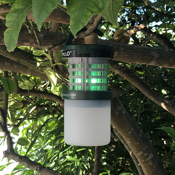 Fabriquée en plastique robuste, la Insect-O-Cutor Nomad est équipée de LED de 200 lumens et d’une grille électrique. Légère mais puissante, cette lampe anti-insectes se transporte facilement. Elle dispose d’une poignée en plastique sur le dessus et se recharge via un câble USB. Une charge complète dure environ 3 heures, offrant jusqu’à 18 heures d’autonomie (moins en mode luminosité maximale à 200 lumens).
