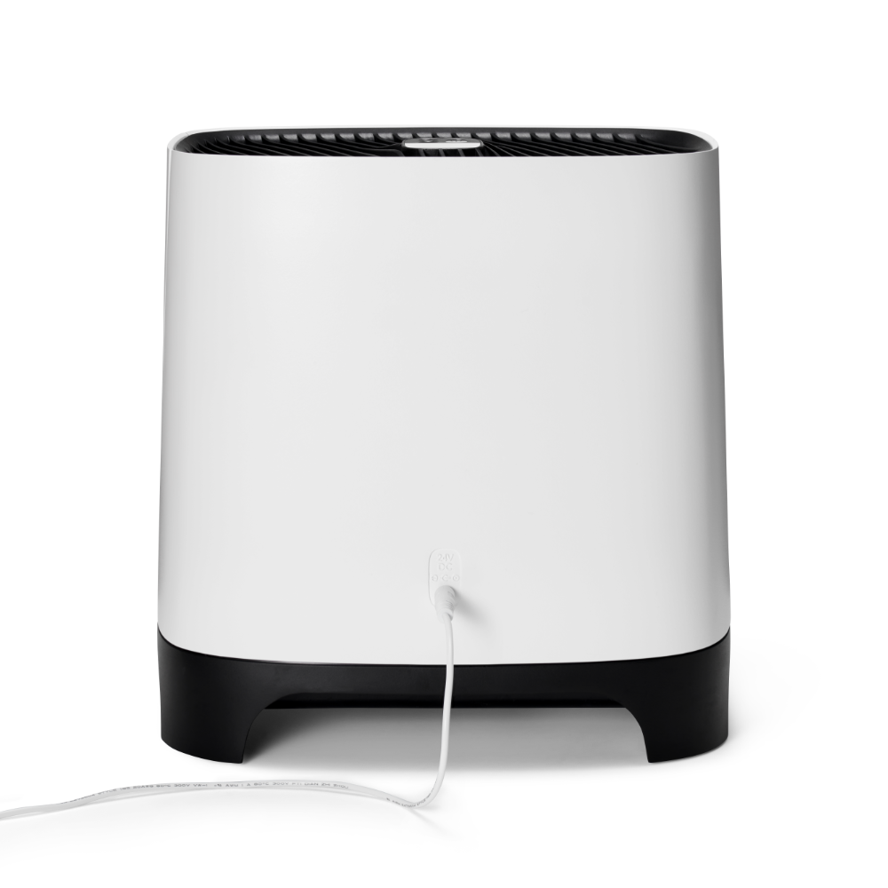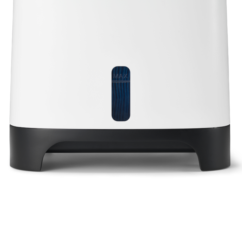 L’humidificateur par évaporation augmente le taux d’humidité de la même manière que la nature. Un ventilateur souffle l’air à travers des filtres d’évaporation humides, un processus comparable au vent qui souffle au-dessus de la mer. L’eau du réservoir de l’Armin 300 reste exempte de bactéries et d’algues grâce au tampon de stérilisation de l’eau Silvertex®, combiné à un revêtement antimicrobien sur les filtres d’évaporation.