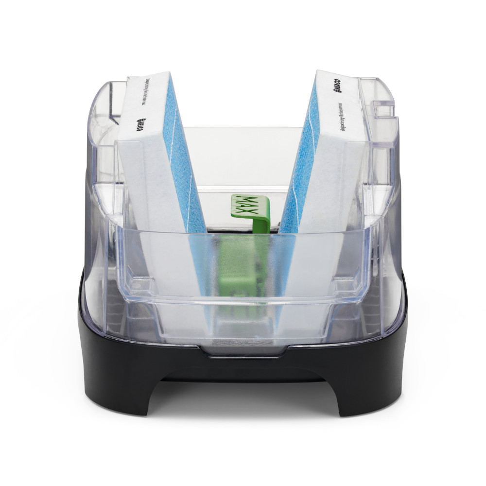 L’Armin est le seul humidificateur européen à utiliser le tampon de stérilisation de l’eau Silvertex®, fabriqué en argent pur et en PET. Silvertex® libère des ions d’argent dans l’eau, empêchant la prolifération des germes et des micro-organismes. Cela garantit que l’eau reste pure et empêche les bactéries de se propager dans l’air que vous respirez. Avec une durée de vie pouvant aller jusqu’à un an, Silvertex® offre des performances durables et fiables pour un environnement plus sain.