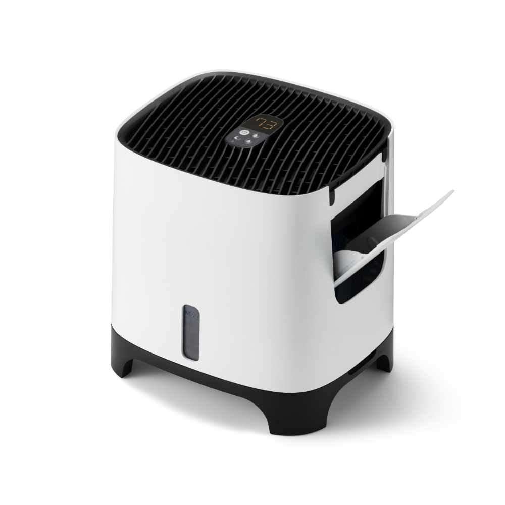Le Meaco Armin 300 assure une humidification de l’air sans dépôts blancs ni particules de saleté. Cet humidificateur par évaporation est facile à remplir par le haut et dispose d’un double flux d’air pour garantir une répartition optimale de l’humidité dans la pièce.