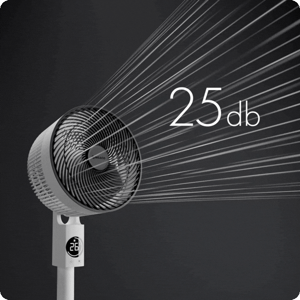 Le moteur très efficace sans balais tourne à plus de 1 450 tr/min, consommant le moins d'énergie possible et produisant le moins de bruit possible. Cela rend le ventilateur sur pied Meaco Sefte 10 ultra-silencieux à partir de 25 dB.