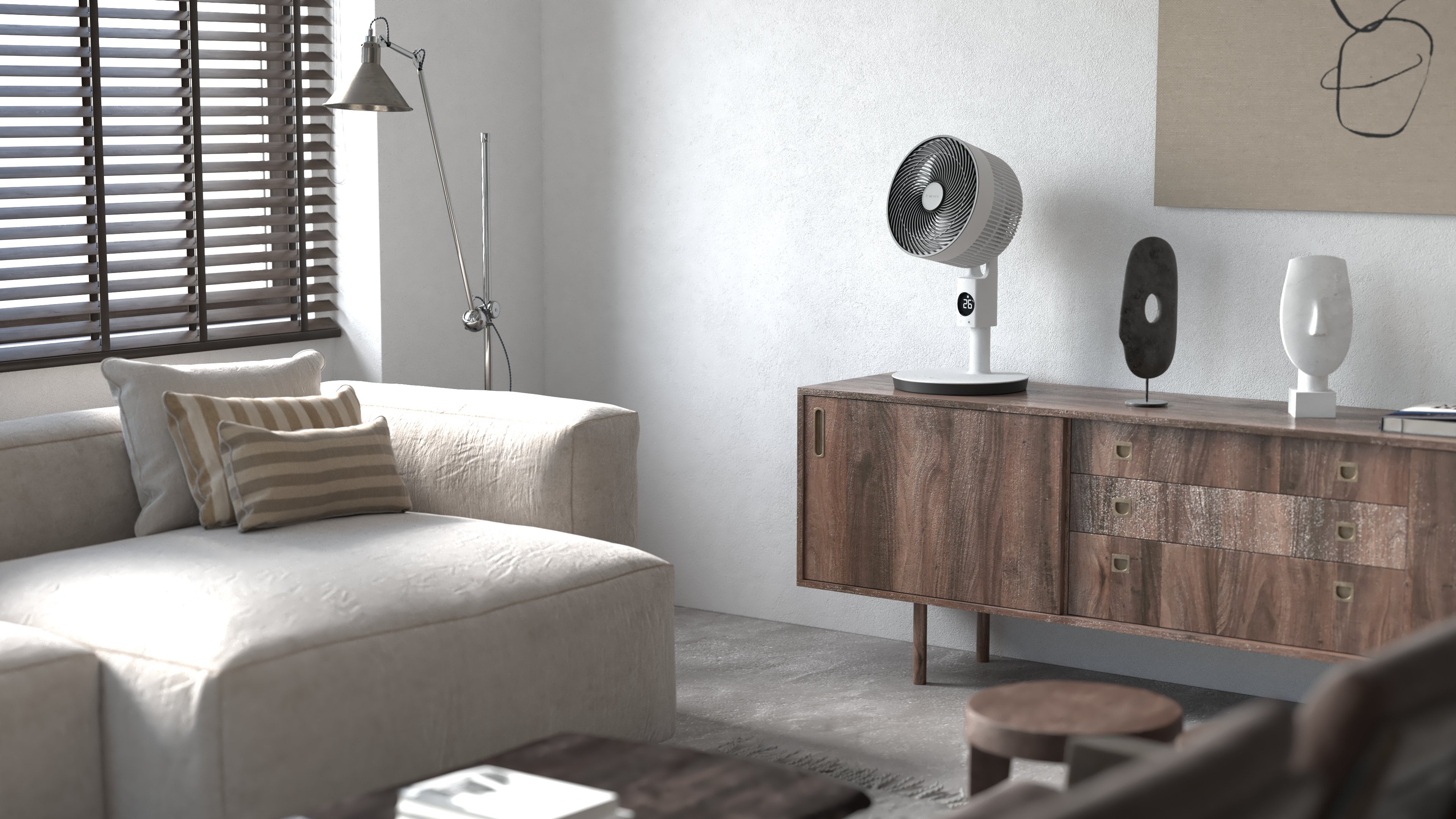Au sol dans le salon ou sur la table de chevet dans la chambre, le ventilateur assure un refroidissement optimal. Conçu pour un usage quotidien, le socle MeacoFan Sefte 10 fonctionne silencieusement et efficacement. Réglez-le sur l'un de ses 12 modes continus, ou choisissez le mode nuit ou le mode éco.