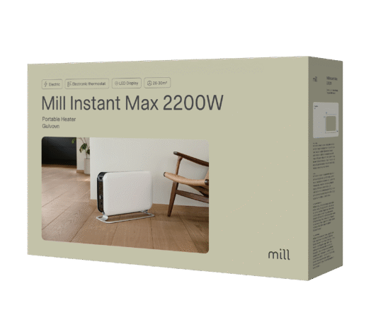 Mill CO2200LEDMAX – Convecteur design, puissant et silencieux (2200 W) Le Mill CO2200LEDMAX est un convecteur moderne et élégant offrant une puissance impressionnante de 2200 W, idéal pour chauffer rapidement et uniformément des pièces jusqu’à 30 m². Avec son design scandinave minimaliste, son panneau frontal légèrement incurvé, ses angles arrondis et son pied en aluminium stable, il semble flotter au-dessus du sol – une touche raffinée dans tout intérieur contemporain. Le thermostat électronique permet de régler précisément la température souhaitée via l’écran LED clair, assurant un confort thermique optimal à tout moment. Entièrement silencieux (sans ventilateur), il convient parfaitement aux chambres, salons ou bureaux où la tranquillité est essentielle. La fonction minuterie permet de définir facilement la durée de fonctionnement souhaitée ; une fois le temps écoulé, l’appareil passe automatiquement en mode veille, économisant de l’énergie tout en offrant un confort d’utilisation maximal. En plus de son design élégant et de son fonctionnement silencieux, le CO2200LEDMAX est équipé de toutes les protections de sécurité importantes, notamment contre la surchauffe et en cas de chute accidentelle, pour un chauffage sûr et fiable. Pourquoi choisir Mill ? Mill est synonyme de design scandinave, de technologie écoénergétique et de simplicité d’utilisation. Le CO2200LEDMAX allie esthétique, confort et sécurité en un seul appareil – le choix idéal pour ceux qui recherchent une chaleur agréable dans un environnement calme et élégant.