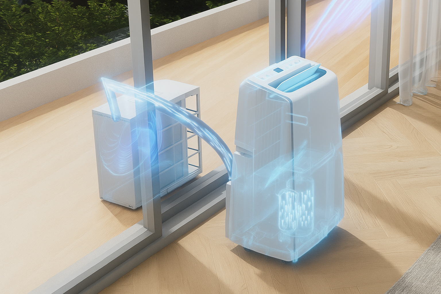 Le PureAirPro DuoClima 35 est un climatiseur mobile split avec fonction chauffage, puissant et polyvalent, conçu pour offrir un confort optimal tout au long de l’année. Grâce à son système split innovant avec unité extérieure, il assure une efficacité supérieure en refroidissement et en chauffage, ainsi qu’un niveau sonore nettement réduit à l’intérieur par rapport aux climatiseurs mobiles classiques. Avec une capacité de 12 000 BTU (3,5 kW), le DuoClima 35 convient aux pièces jusqu’à environ 40 m² et garantit une fraîcheur agréable en été ainsi qu’une chaleur confortable en hiver. La technologie inverter DC intégrale permet un fonctionnement économe en énergie et un climat intérieur stable, tandis que le fluide frigorigène écologique R32 contribue à réduire l’impact environnemental. Grâce à son installation simple sans montage permanent, à la connectivité WiFi intégrée et aux accessoires fournis, ce climatiseur mobile split est idéal pour une utilisation dans les habitations, bureaux ou résidences de vacances. Le PureAirPro DuoClima 35 allie flexibilité, facilité d’utilisation et performances élevées dans un design moderne.