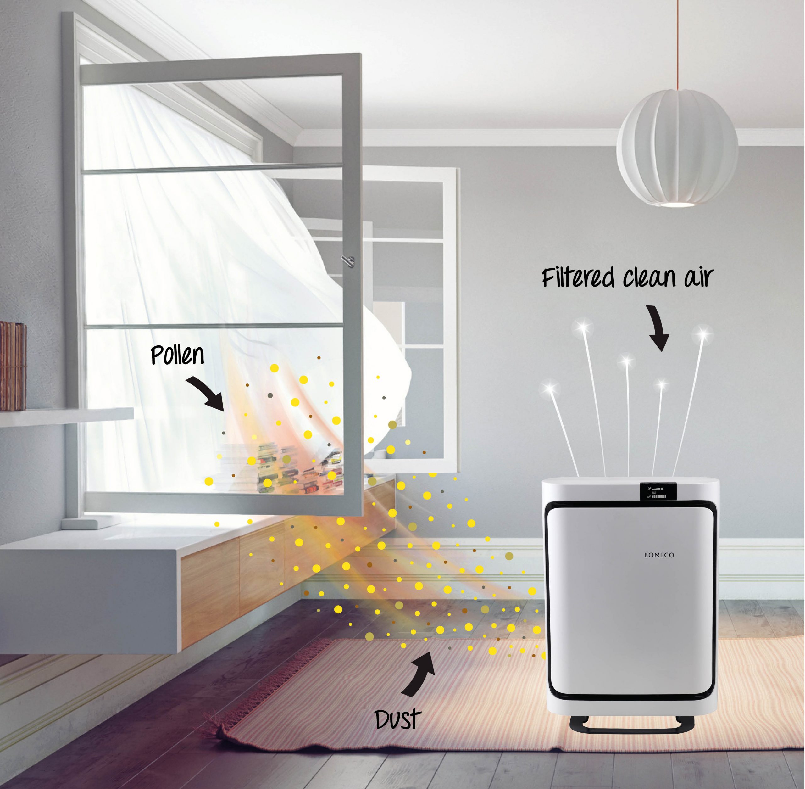 Purificateur d’air avancé au design élégant, lauréat du Red Dot Design Award. Convient à la purification de l’air à la maison, dans la chambre ou au bureau, tout au long de l’année. Entièrement automatique, avec fonction minuterie. Équipé d’un concept de filtration individuel. Purification de l’air selon les préférences personnelles. Choix entre trois filtres HEPA différents. Filtre HEPA Allergies (fourni de série), filtre HEPA pour chambre de bébé ou filtre HEPA Smog. Tous les filtres sont équipés d’un préfiltre et d’un filtre à charbon actif anti-odeurs.