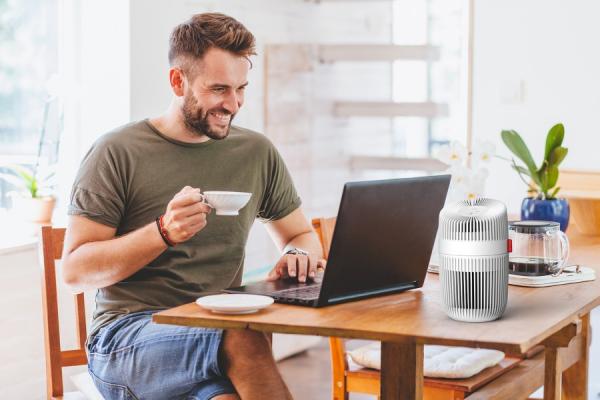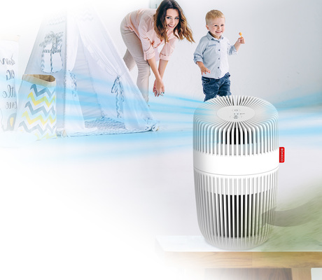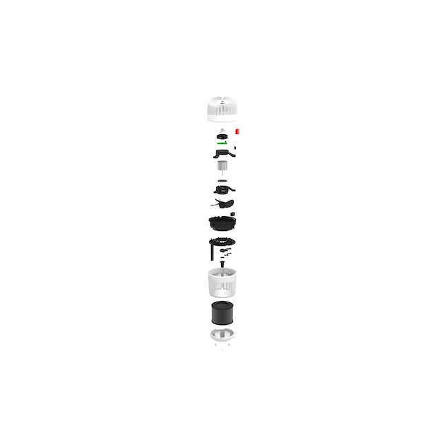Le BONECO P130 est un purificateur d’air compact offrant une performance de purification élevée dans un design moderne. Ce purificateur d’air mobile haute performance est équipé d’un système de purification triple, composé d’un préfiltre, d’un filtre HEPA H13 avec ioniseur et d’une lampe UV-C. Il est facile à utiliser et très efficace. Grâce à son entrée d’air à 360°, le purificateur d’air a été récompensé par le Red Dot Design Award et capture efficacement le pollen, la poussière, les bactéries et les virus. Il améliore la qualité de l’air dans les pièces à vivre, les chambres ou les bureaux jusqu’à 15 m², avec un débit d’air de 60 m³/h.
