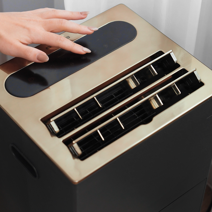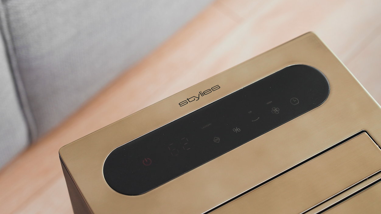 Le Stylies Mercure, conçu et développé en Suisse, est idéal pour maintenir un air intérieur confortable et sec. Avec une capacité de déshumidification de 20 litres par jour, un réglage de l’humidité entre 30% et 90% et un minuteur programmable de 24 heures, il convient parfaitement aux pièces jusqu’à 40 m² / 90 m³. Trois modes sont disponibles. Déshumidification, ventilation et séchage du linge. Les roulettes intégrées facilitent le déplacement de l’appareil. Sa finition anthracite luxueuse associée à un panneau supérieur doré brossé apporte une touche élégante et s’intègre harmonieusement dans tout intérieur moderne, alliant performance et raffinement.