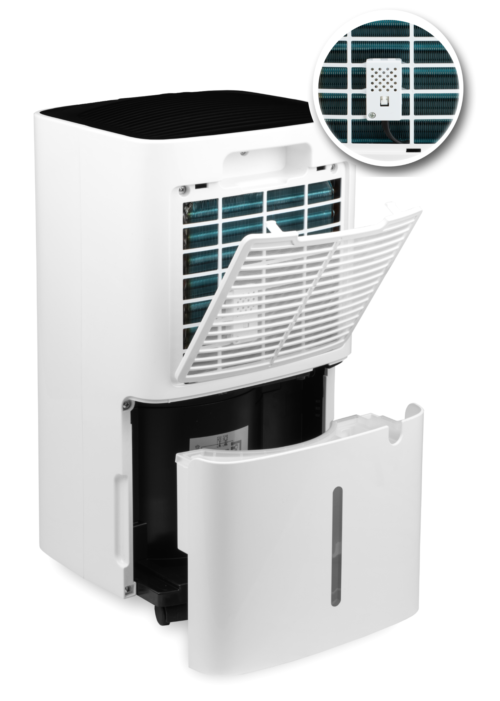 Très silencieux en utilisation, seulement 36dB Filtre à air lavable, très facile à enlever et à laver Redémarrage automatique après une panne de courant, en gardant les paramètres Hygrostat électronique, moderne et utile Indicateur de niveau d'eau à l'arrière de l'appareil Option de drainage continu, utile pour une utilisation intensive
