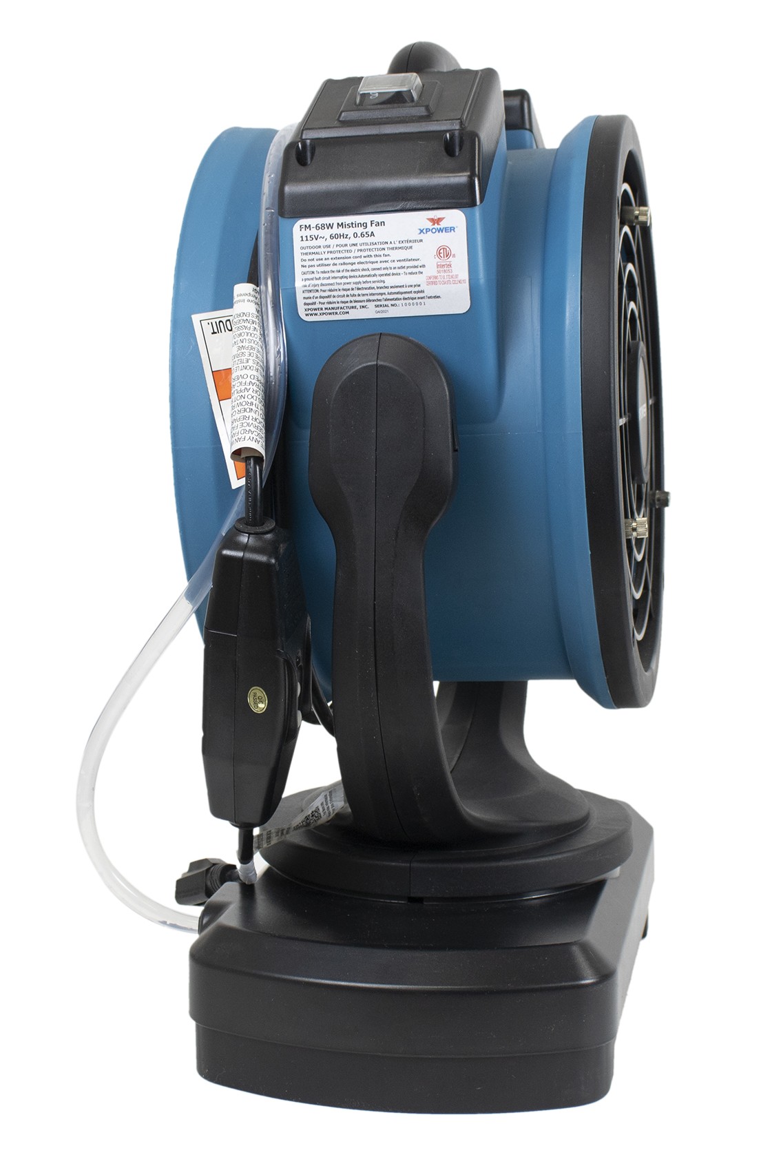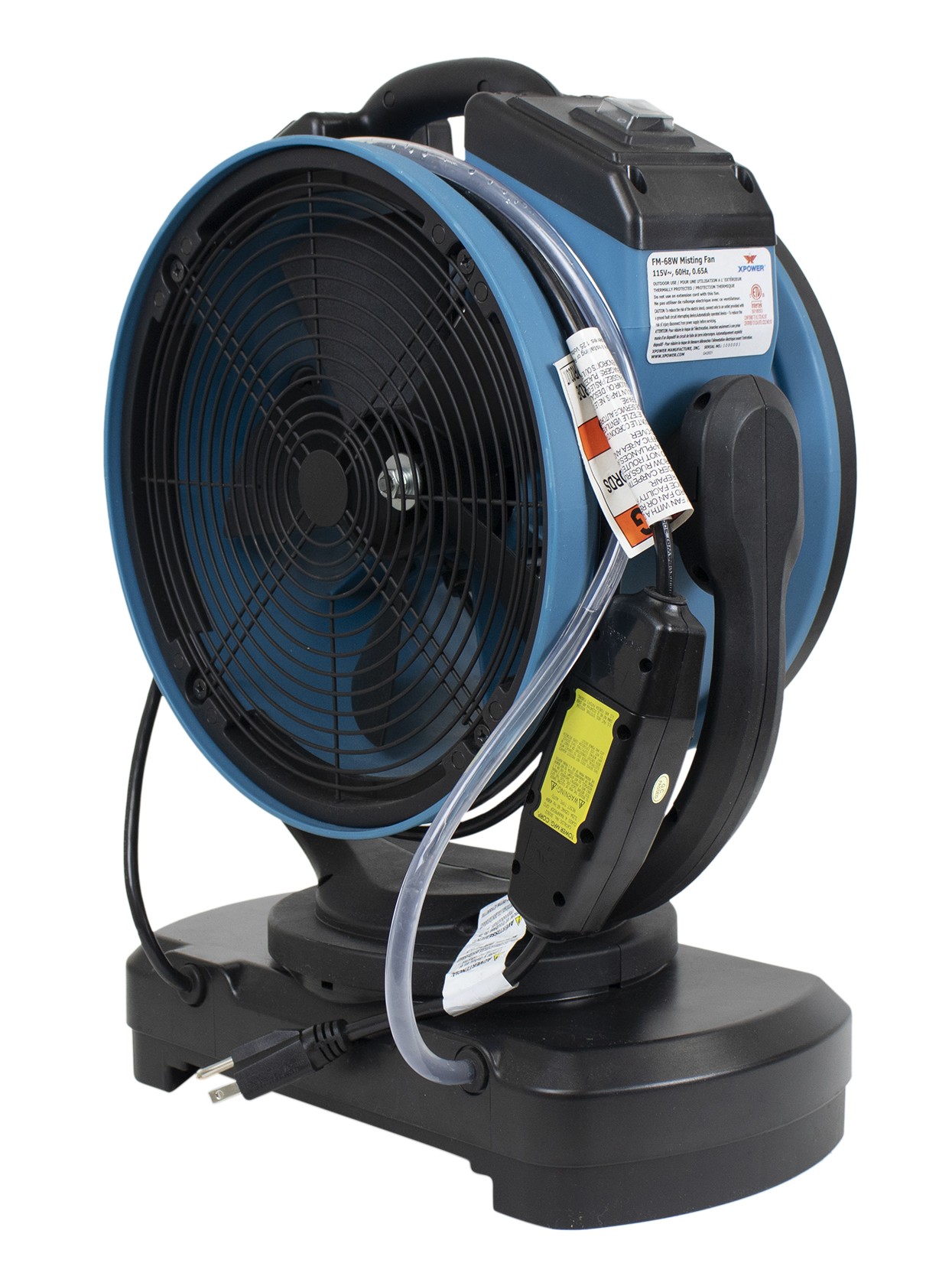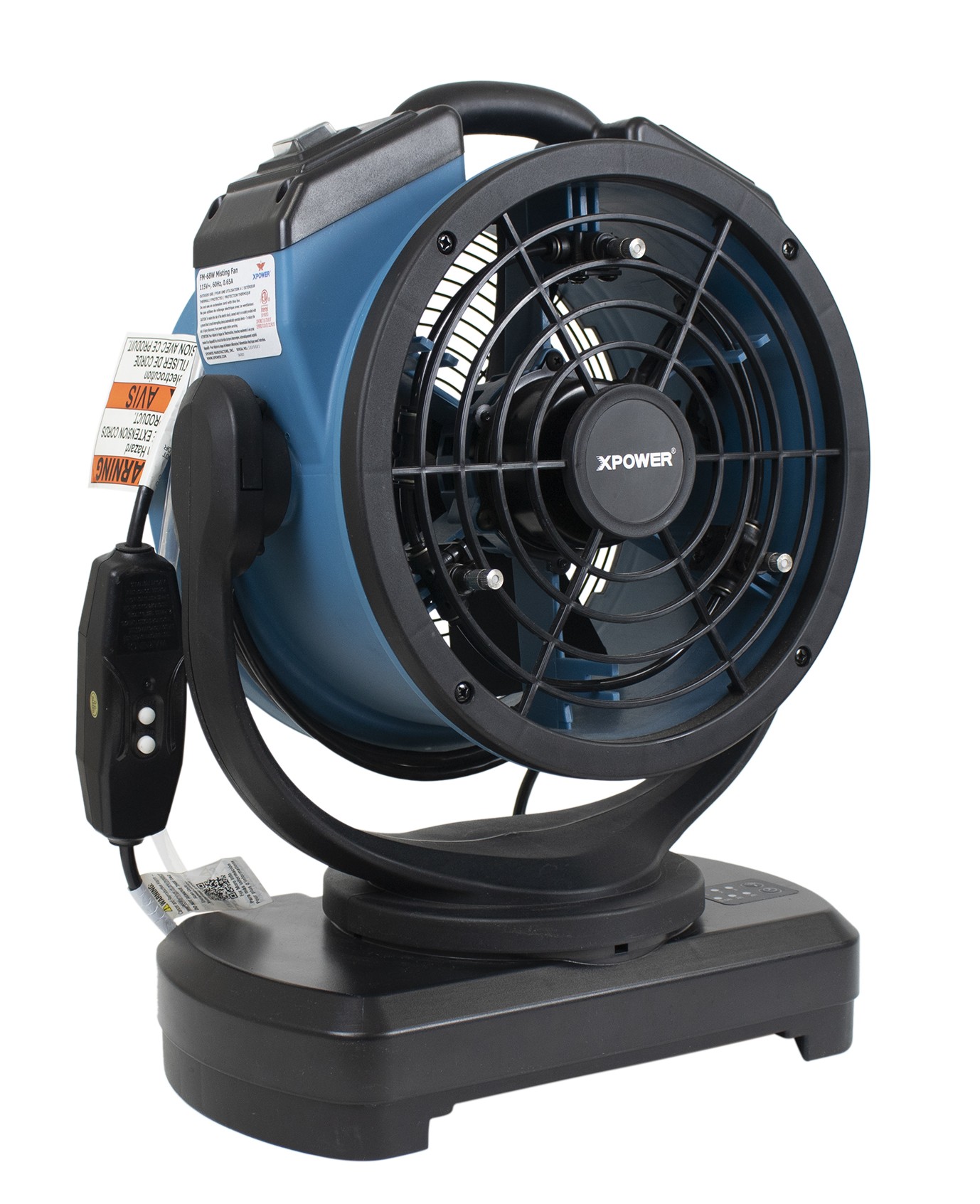 Le XPOWER FM-68W est un ventilateur brumisateur oscillant puissant et polyvalent avec pompe à eau intégrée, conçu pour offrir un confort optimal en extérieur. Grâce à son oscillation de 145° et à sa circulation d’air automatique, il assure une large couverture et un rafraîchissement efficace pour toutes vos activités en plein air. Contrairement aux brumisateurs classiques, le FM-68W ne nécessite pas de raccordement fixe à un tuyau d’arrosage. Il peut fonctionner avec une source d’eau mobile, comme un seau de 5 gallons (19 L) ou le réservoir optionnel XPOWER WT-90. Grâce à sa pompe intégrée et à sa technologie de brumisation avancée, il peut réduire la température ambiante jusqu’à 10 °C – idéal pour les terrasses, fêtes de jardin, événements sportifs, zones de piscine, ainsi que pour l’horticulture et les serres. Pour une sécurité optimale, il est équipé d’une protection électrique GFCI, tandis que son boîtier robuste mais élégant en polypropylène (PP) est parfaitement adapté à une utilisation extérieure. Le FM-68W peut également être utilisé en intérieur. Il suffit de débrancher la ligne d’eau et de profiter de son flux d’air puissant de 1000 CFM, avec une consommation extrêmement faible de seulement 68 W (0,65 A). Parfait pour la ventilation, la circulation d’air ou même le séchage de pièces. Caractéristiques Principales 3 vitesses de ventilation avec réglage du débit d’air Rotation à 145° et oscillation automatique pour une couverture optimale Pompe à eau intégrée, pas besoin de tuyau d’arrosage fixe Compatible avec un seau de 5 gallons ou le réservoir WT-90 Réduit la température jusqu’à 10 °C grâce à une brumisation fine Débit d’air puissant de 1000 CFM avec seulement 68 W de consommation Sécurité renforcée grâce à la protection électrique GFCI Structure robuste et légère en polypropylène (PP) avec poignée de transport Convient pour une utilisation intérieure et extérieure (sans brumisation en intérieur) Idéal pour : jardins, terrasses, restaurants, hôtels, supermarchés, centres commerciaux, événements et plus encore