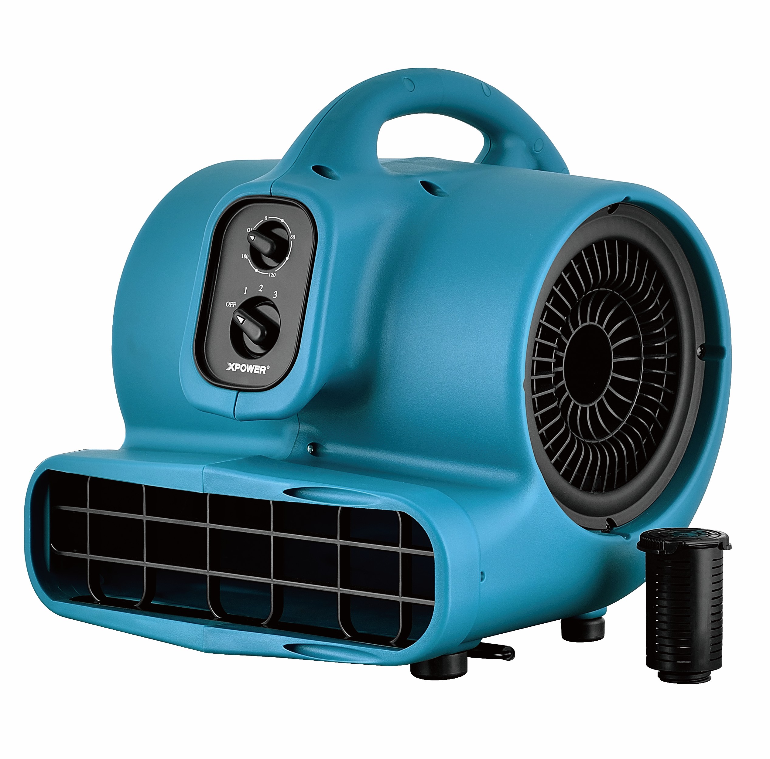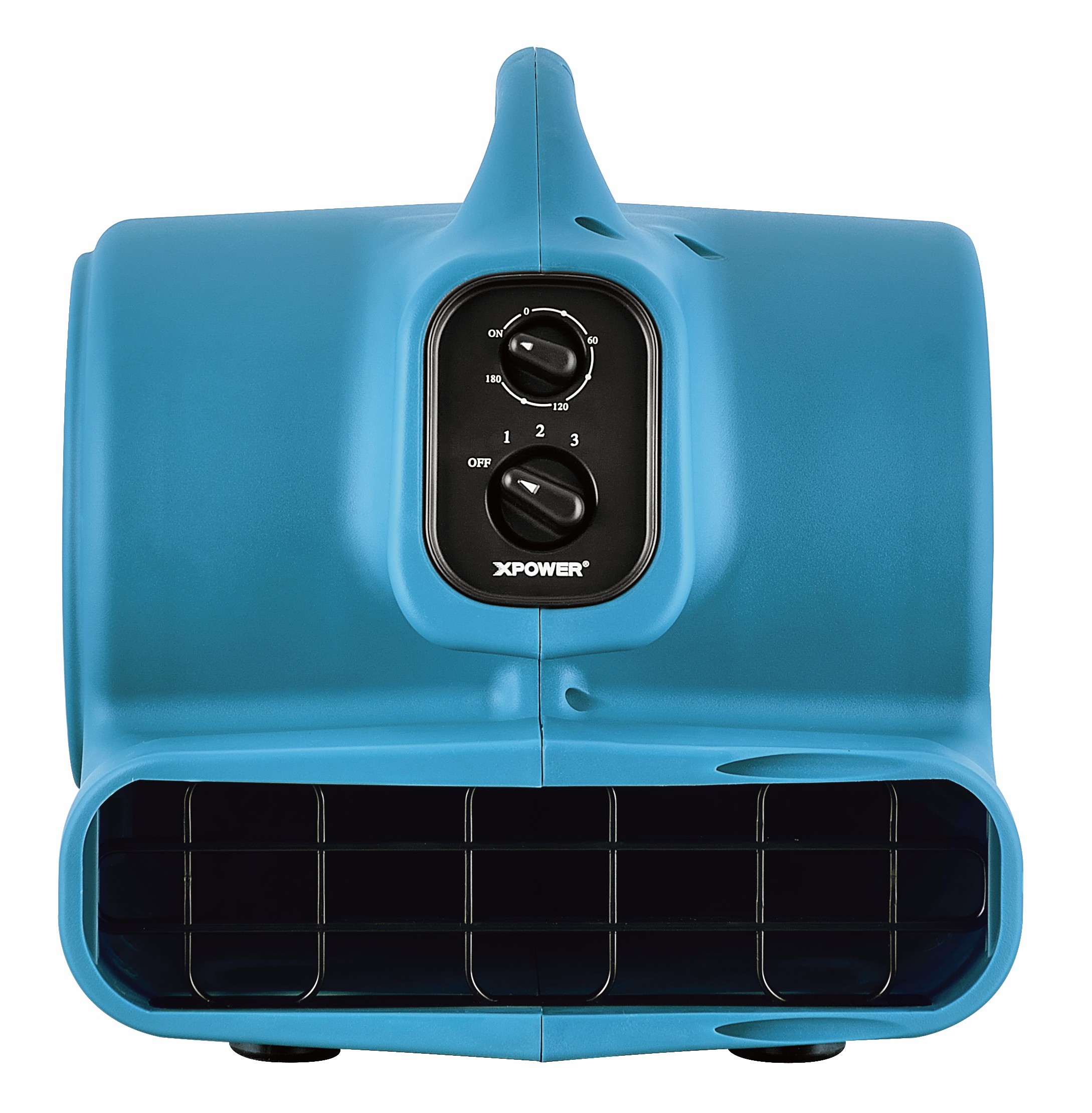 XPOWER P-450T Ventilateur Professionnel avec Boîte à Parfum et Minuterie Le XPOWER P-450T est un ventilateur puissant, spécialement conçu pour une utilisation professionnelle comme domestique. Avec son moteur de 350W, il génère un débit d’air d’environ 2.700 m³/h (1600 CFM), permettant de sécher ou ventiler les espaces rapidement et efficacement. Grâce à sa boîte à parfum brevetée, l’air peut être rafraîchi avec des perles neutralisantes d’odeurs pendant le séchage ou la ventilation, éliminant immédiatement les mauvaises odeurs. Le modèle XPOWER P-450T n'est pas équipé d'un ioniseur. Le P-450T est équipé d’une minuterie de 3 heures avec mode continu, ce qui permet de l’utiliser en toute tranquillité pour des cycles courts ou des périodes prolongées de ventilation. Avec 3 vitesses et 4 angles de séchage réglables (0°, 20°, 45° et 90°), le flux d’air peut être dirigé avec précision vers les sols, tapis, placards ou espaces difficiles d’accès comme les sous-sols ou couloirs. L’appareil est doté d’un boîtier robuste en polypropylène résistant aux chocs et ne pèse que 8,3 kg, ce qui le rend facile à transporter. Pour un usage professionnel, le P-450T peut également être empilé jusqu’à 4 unités, ce qui facilite le transport et le stockage. Grâce à son format pratique (35,3 x 37,6 x 37,0 cm), il offre des performances de qualité commerciale sans occuper beaucoup de place. Le XPOWER P-450T est idéal pour : Un usage domestique pour éliminer l’humidité et les mauvaises odeurs Les nettoyeurs de tapis qui souhaitent sécher les sols rapidement et efficacement Les spécialistes des dégâts des eaux qui ont besoin d’équipements de séchage puissants et durables Les événements et espaces commerciaux où un air frais et un séchage rapide sont nécessaires