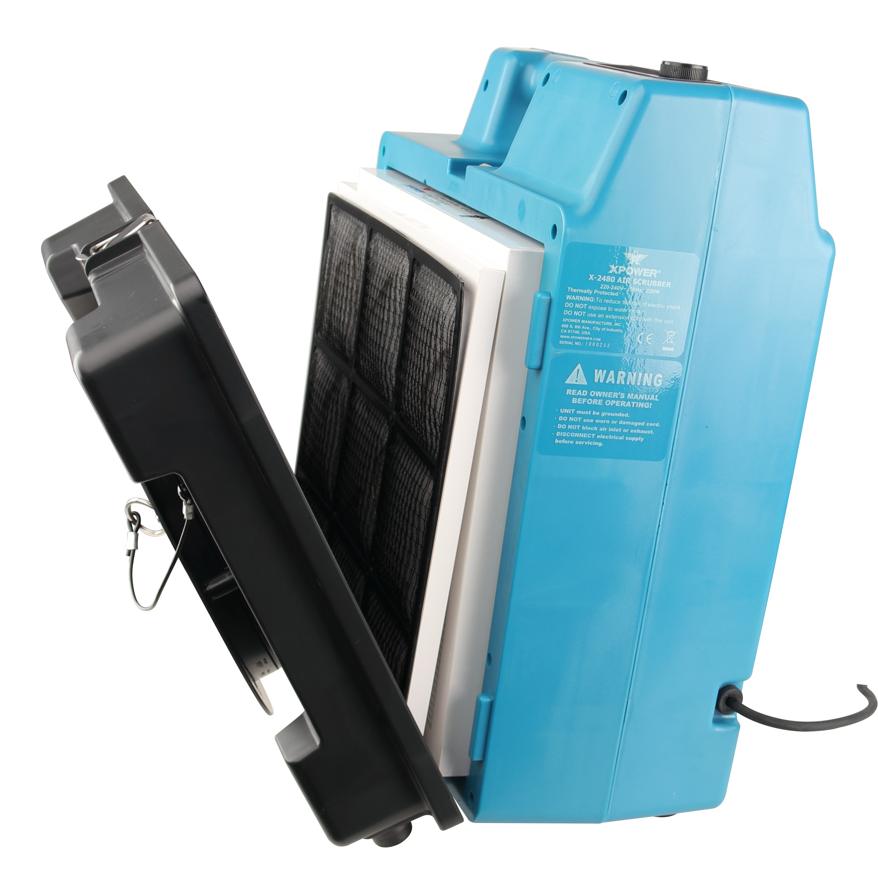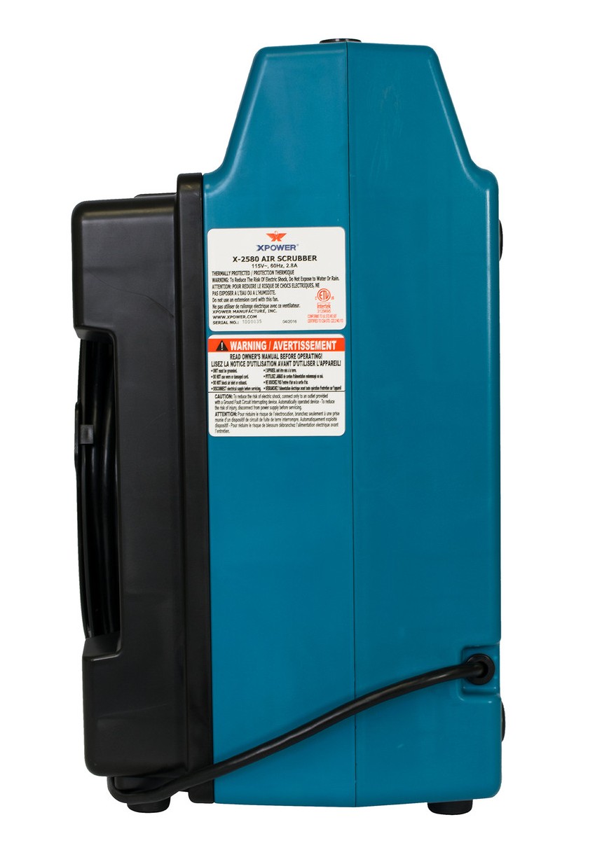 Petit mais puissant, le nouveau XPOWER X-2480 assure une purification de l’air de qualité professionnelle dans un format compact et portable. Doté d’un moteur à induction à rotor externe de ½ HP, ce système de purification commerciale à 3 étapes délivre 550 CFM avec une consommation inférieure à 3,0 ampères. Conçu pour restaurer la qualité de l’air intérieur sur divers chantiers, le X-2480 avec filtre HEPA élimine efficacement les contaminants, les particules en suspension et les poussières submicroniques grâce à sa technologie de filtration avancée en 3 étapes. Le premier étage, un préfiltre en maille de nylon lavable et réutilisable, prolonge la durée de vie des filtres principaux. Le deuxième étage, un filtre plissé, capture des impuretés supplémentaires, et le véritable filtre HEPA retient 99,97% des particules de 0,3 micron et plus. Un témoin lumineux pratique signale quand il est nécessaire de nettoyer ou de remplacer les filtres. Parmi les autres fonctionnalités: un variateur à cinq vitesses et un capuchon en mousse adapté pour contenir les contaminants. La sortie d’air à rebord peut facilement être raccordée à une gaine pour canaliser l’air purifié ou créer une pression négative. Empilable et léger pour un transport aisé, le robuste X-2480 est idéal même pour les travaux les plus exigeants de restauration après dégâts des eaux et de construction.