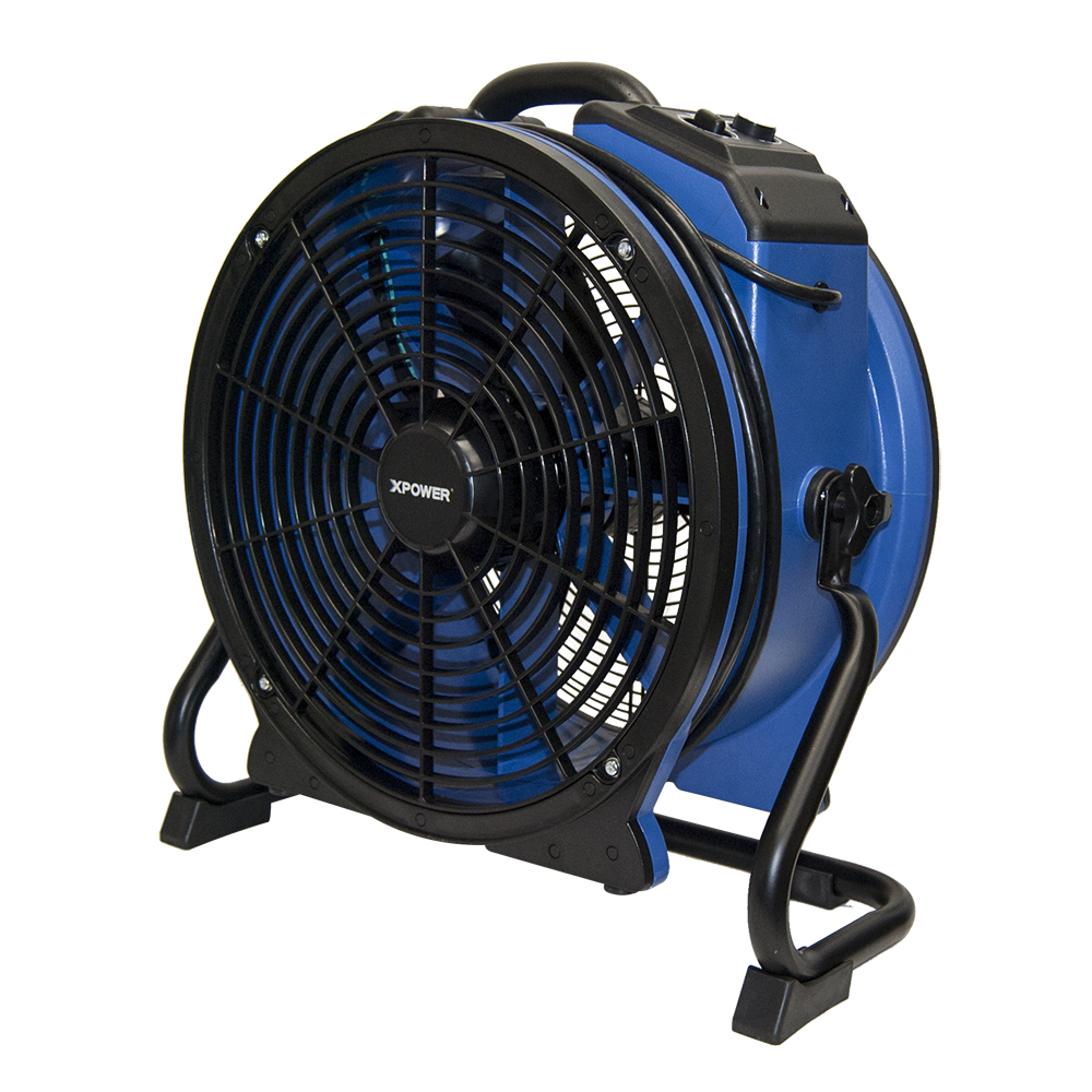 Le XPOWER X-48ATR est un ventilateur haute température capable de résister à des environnements allant jusqu’à 82 °C et peut être utilisé avec des chauffages radiaux pour faire circuler de l’air chaud. Idéal pour la lutte antiparasitaire et la restauration après dégâts des eaux. Le X-48ATR est équipé d’un variateur de vitesse, d’une faible consommation de seulement 2,8 A, d’une minuterie de 3 heures, d’un support rotatif à 360°, ainsi que de prises intégrées en série (daisy chain). Grâce à sa conception de grille unique, il diffuse un flux d’air puissant et ciblé jusqu’à 18 mètres dans toutes les directions. Son moteur scellé est protégé contre les contaminants et l’humidité. Ultra léger et facile à transporter, il peut être empilé jusqu’à 5 unités.